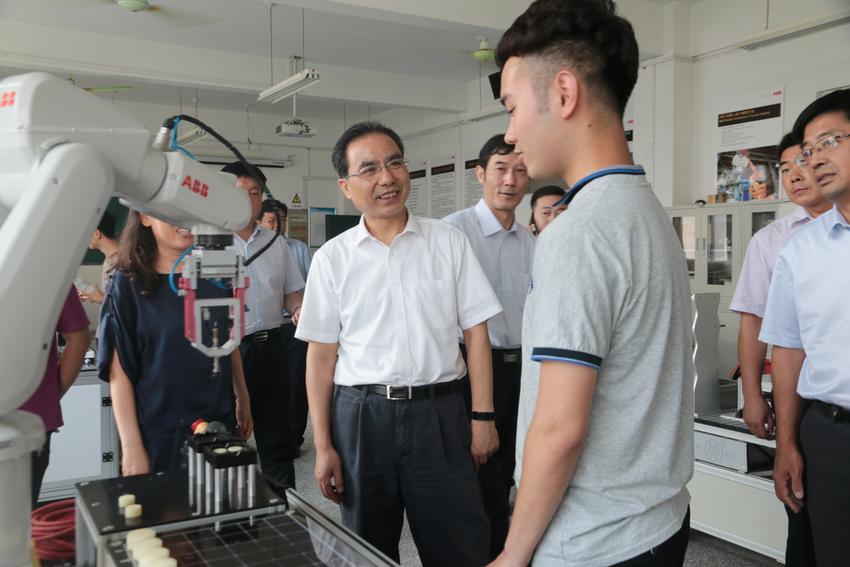 会后,尹厅长在校领导的陪同下参观了实验实训室。