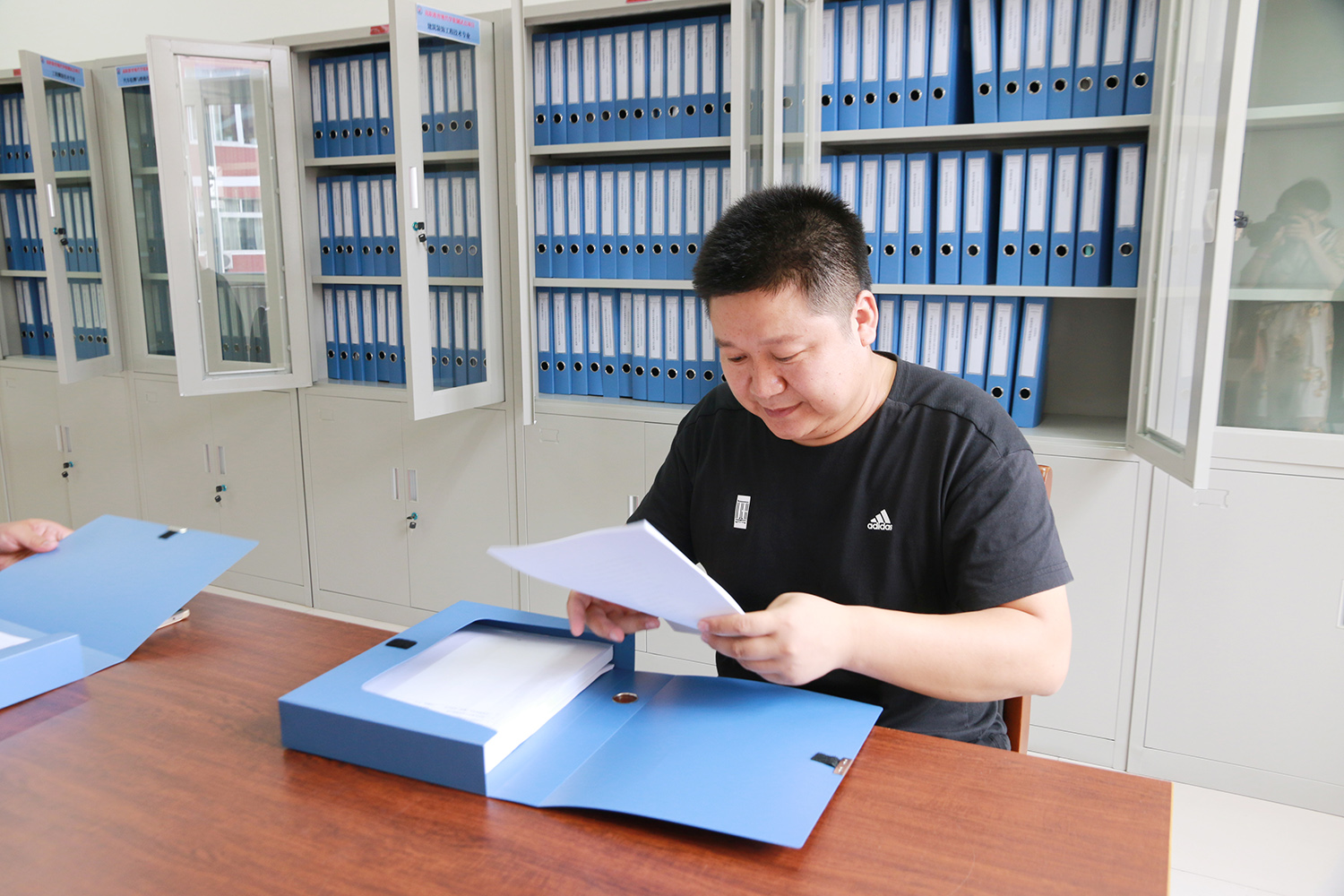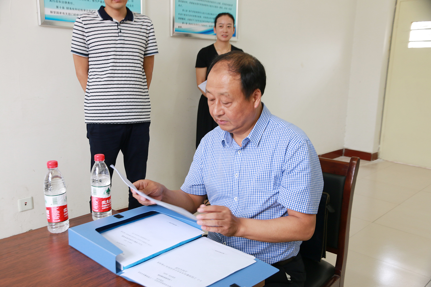全国现代学徒制工作专家指导委员会河南调研组专家查阅我校材料