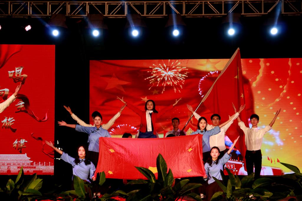 盛世欢歌庆华诞,金风送爽迎新生。为了共同庆祝伟大的祖国成立69周年,祝福中华民族繁荣昌盛,祝福学校明天更加美好,欢迎2018级新生,我校2018年唱响主旋律·筑梦新时代“庆国庆·迎新生”文艺晚会于9月28日晚在孔明路校区神舟广场隆重举行。校领导温道军、杜建根、刘纪山及万余名师生一起观看了演出。