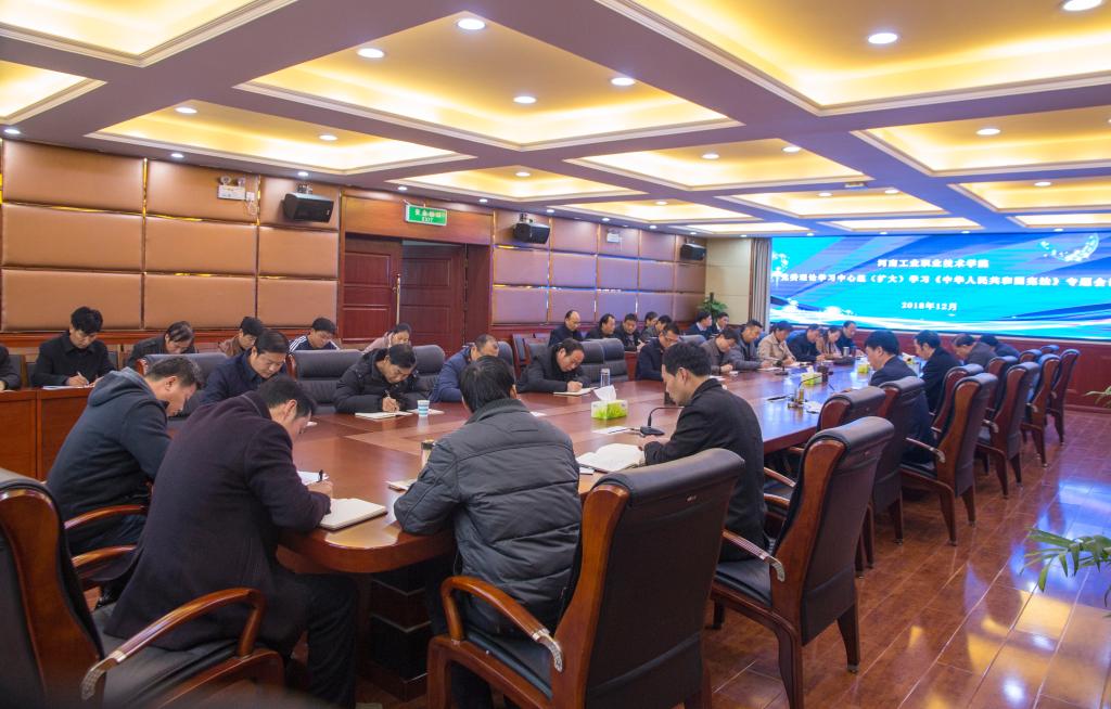 12月4日下午,在我国第五个国家宪法日当天,学校在孔明路校区行政楼四楼会议室召开党委理论学习中心组(扩大)会议,专题学习《中华人民共和国宪法》相关知识。党委理论学习中心组全体成员,各党总支、直属党支部书记参加。