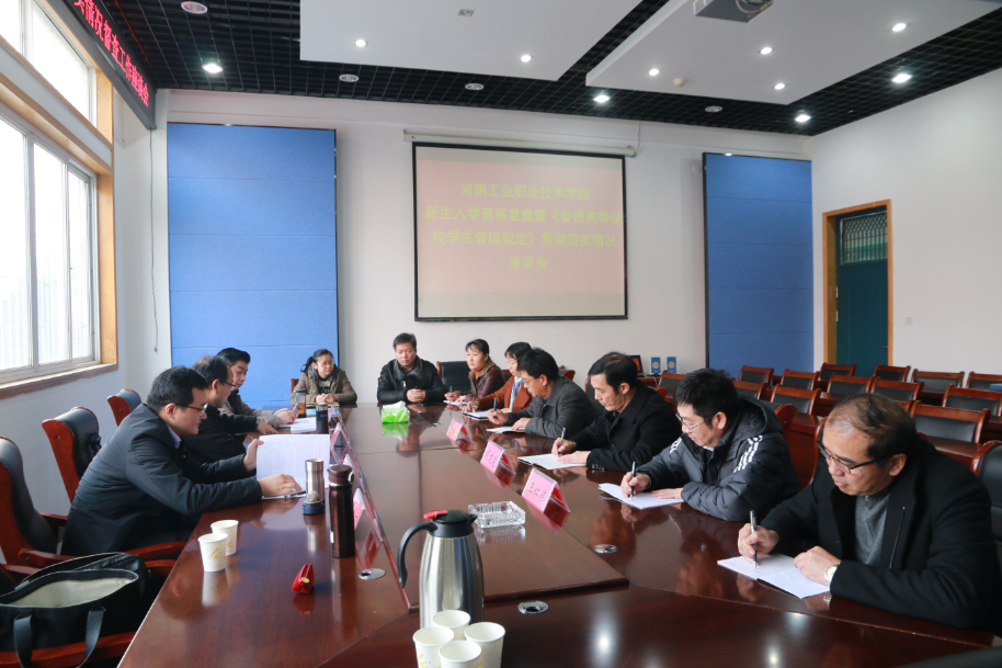 12月20日上午,以商丘师范学院副院长郭文佳为组长的省教育厅2018年录取新生入学资格复查工作暨《普通高等学校学生管理规定》贯彻落实情况第六督查组一行4人莅临我校,对我校新生入学资格复查、学籍学历管理以及贯彻落实《普通高等学校学生管理规定》等情况进行全面的督查和指导。学校在行政楼四楼会议室召开工作汇报会,党委书记胡龙廷,副校长王仁伟、贾庆成出席会议,招生就业处、教务处、学生处、纪检监察室、校医院等部门负责人及各院(系)院长(主任)参加会议,会议由副校长贾庆成主持。
