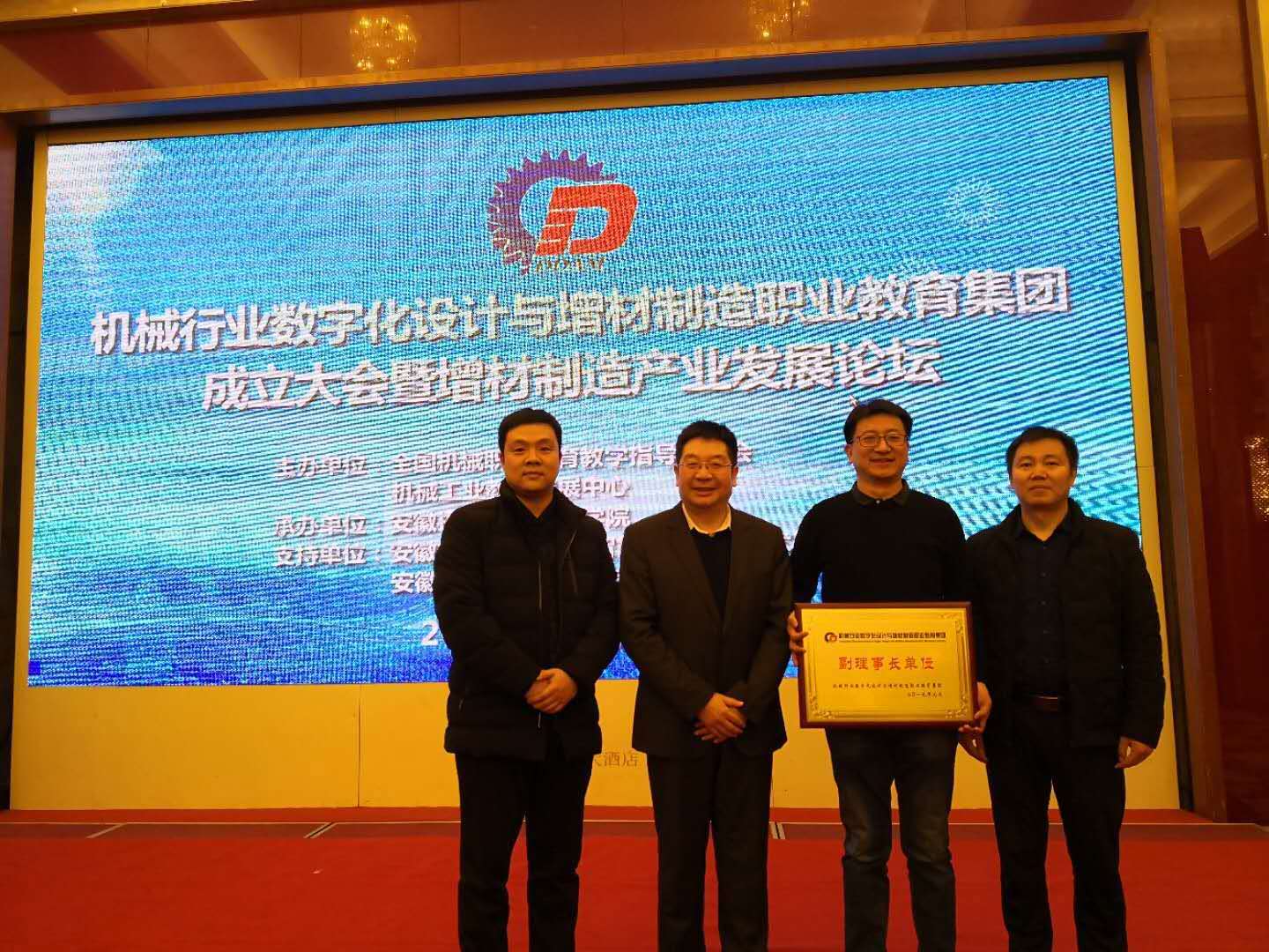 全国机械行业数字化设计与增材制造职业教育集团是由安徽机电职业技术学院联合天津职业大学、北京工业职业技术学院、苏州工业职业技术学院、西安增材制造国家研究院有限公司等单位共同发起,经全国机械职业教育教学指导委员会及机械工业教育发展中心批准成立,共有来自全国各地的增材制造协会、高职院校以及行业企业的103家理事会成员单位。