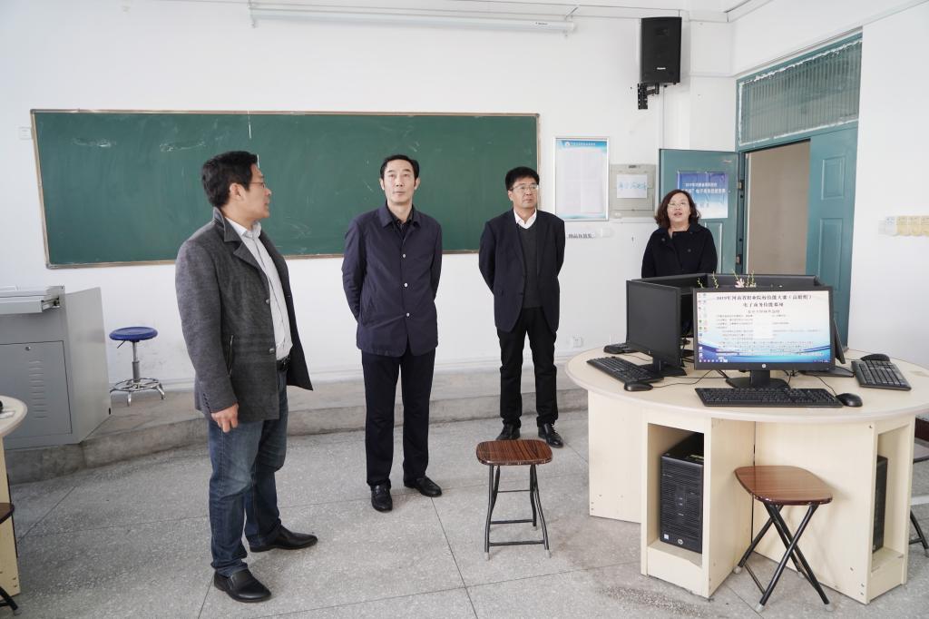 4月12日上午,学校党委书记胡龙廷、副校长贾庆成在教务处同志陪同下,对2019年全国职业院校技能大赛河南选拔赛“现代电气控制系统安装与调试”“光伏电子工程的设计与实施”“电子商务技能”“电子产品芯片级检测维修与数据恢复”4个赛项的赛场和开幕式场地进行了考察。