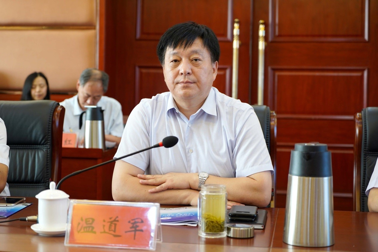 温道军代表学校对郭建生校长一行的到来表示热烈欢迎,向与会领导介绍了学校的基本情况,特别是今年以来,学校坚持以“职教20条”为遵循,以建设“中国特色高水平高职学校和专业”为目标,在“创新发展行动计划”“‘双高计划’申报”“2019年全国职业院校技能大赛”“创新创业教育和学生工作”等方面所取得的成绩。温道军指出,南阳职业学院和我校在长期的办学实践中结下深厚情谊,在交流互鉴中收获了累累硕果,希望今后双方围绕学校发展建设进行更深入的交流,实现双方办学水平的全面提升。
