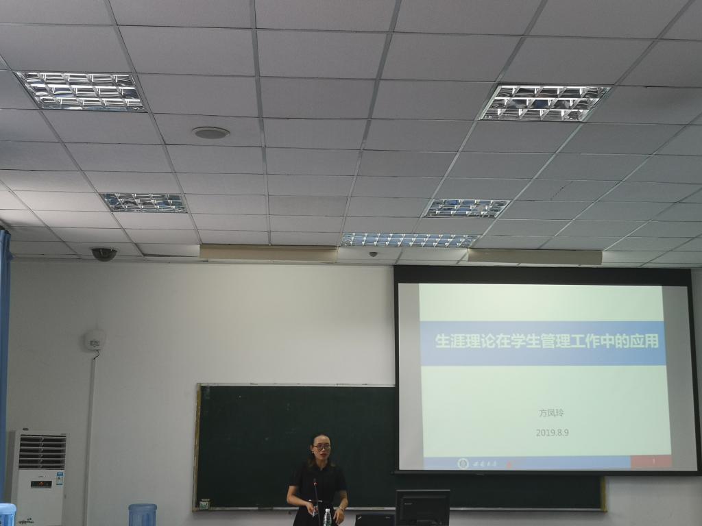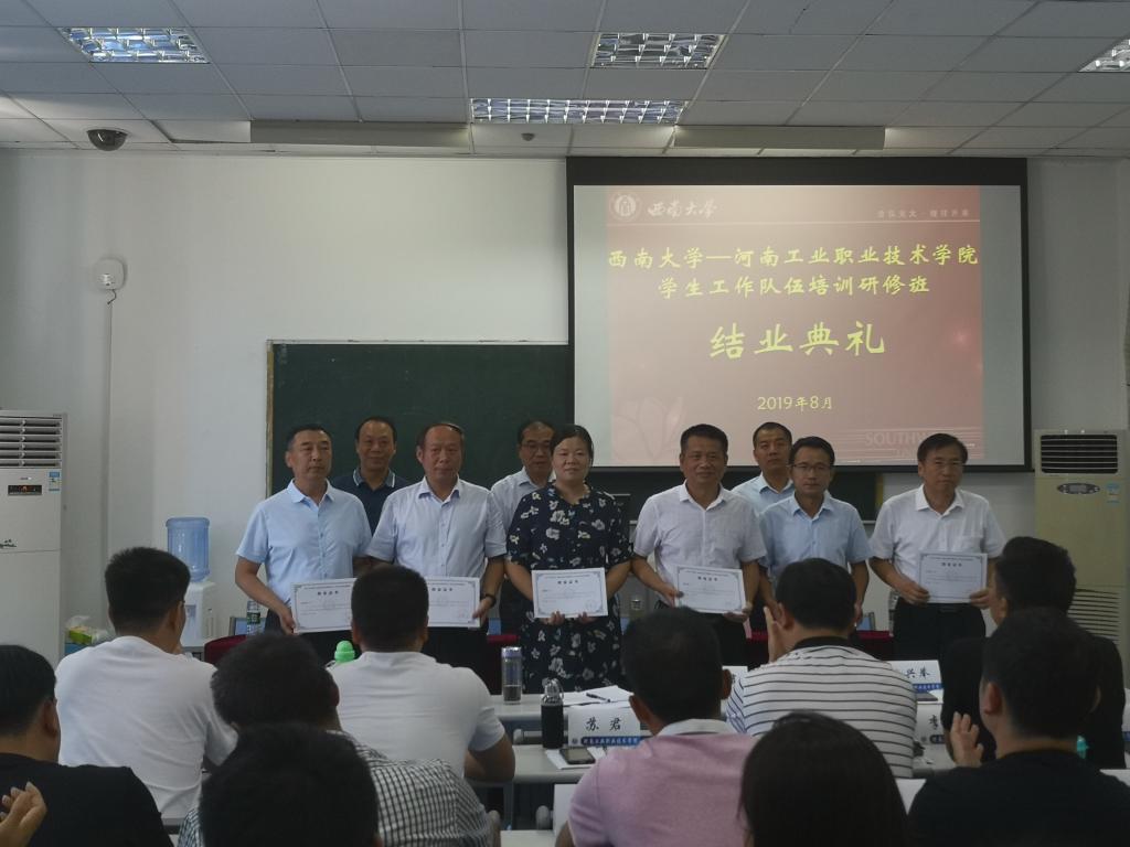为进一步提高学校学生思想政治工作队伍的政治素质和业务水平,开拓宏观视野,更新教育理念,增强岗位履职能力,8月6日至8月10日,我校2019年学生工作队伍培训研修班在全国首批教育部辅导员培训和研修基地西南大学举办。培训班由党委学生工作部(学生处)处长郭明普、校团委书记周大鹏带队,全校六十余名学生思想政治工作者参加。