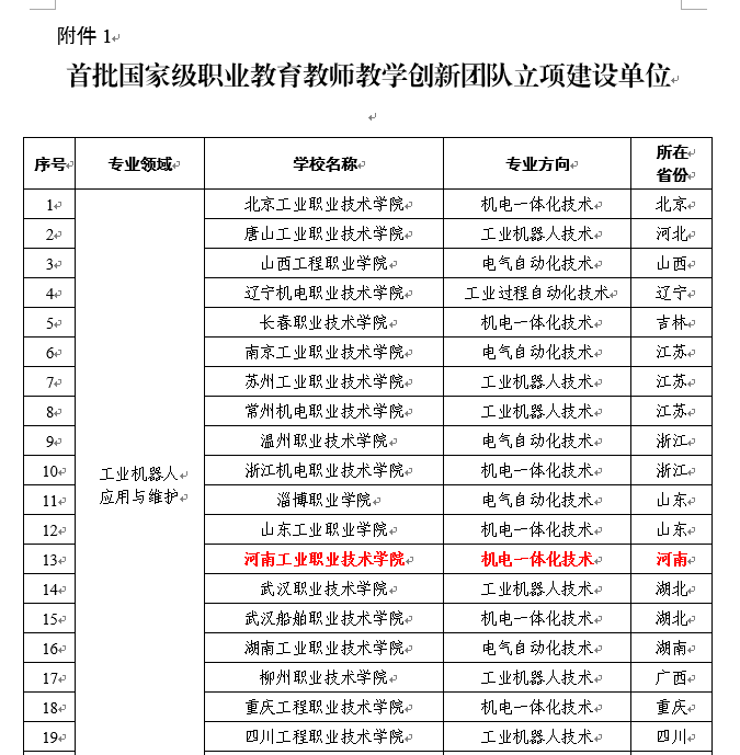 根据《教育部关于公布首批国家级职业教育教师教学创新团队立项建设单位和培育建设单位名单的通知》(教师函〔2019〕7号),全国首批国家级职业教育教师教学创新团队立项建设单位共120个,其中,河南共有4所高职院校入选。