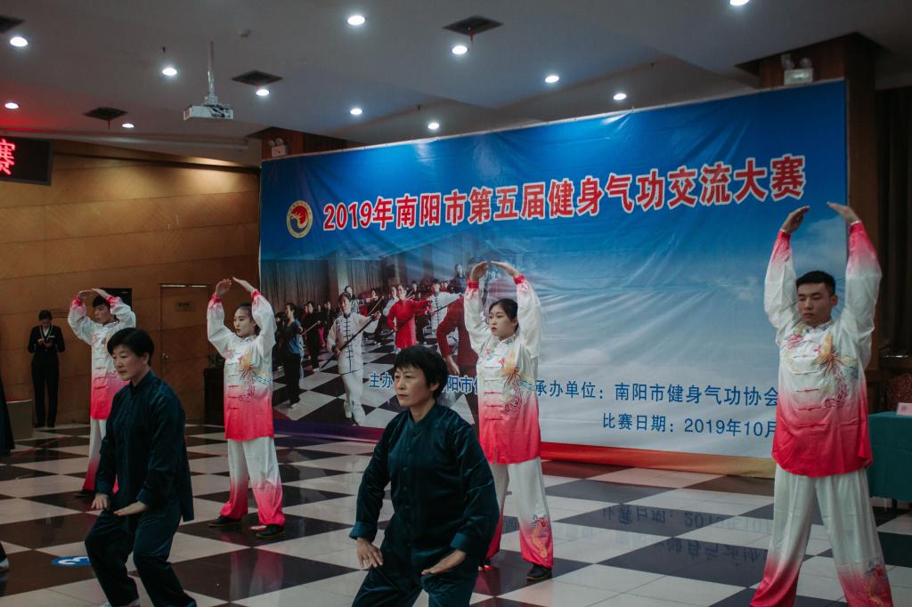 10月26—27日,由南阳市体育局主办,南阳市健身气功协会承办的2019年南阳市第五届健身气功交流大赛在南阳市银河宾馆开幕,来自南阳各县区100多名健身气功精英同场竞技。我校健身气功队在杜习利、张轶星、冯庆雨、秦毅君四位体育教师的带领下参赛,我校留学生代表队应邀参加表演。