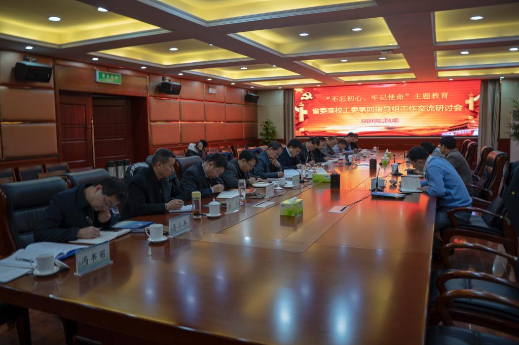 11月26日下午,省委高校工委“不忘初心、牢记使命”主题教育第四指导组工作交流研讨会在我校孔明路校区行政楼四楼会议室召开。省委高校工委第四指导组组长田俊廷、副组长刘禹佳、成员闫怡宁出席会议。校党委书记温道军、副校长杜建根、王仁伟,河南应用技术职业学院党委书记秦书君、河南工业和信息化职业学院党委书记张树岭、河南推拿职业学院党委书记韦保新、河南林业职业学院党委书记吴国新,以及第四指导组指导的五所学校主题教育办公室部分同志参加交流研讨会,会议由刘禹佳主持。