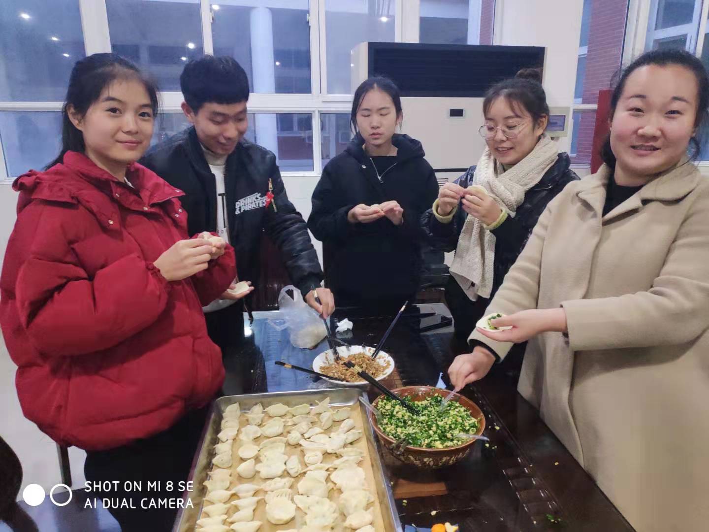 12月20日下午,党委宣传部组织大学生通讯社学生在教职工餐厅开展“温暖迎冬至 师生共度 我们在一起” 包饺子活动。党委委员、副校长王仁伟到活动现场与师生们一起包饺子迎冬至。