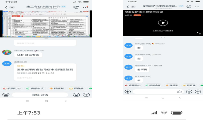 疫情期间,管理人员缺少的不是时间,作为课程学习群体中的一员,相当于亲临各班的网上教学现场,采用“跟、观、听、盯”,对教学资源、教学组织、教学在线时长、师生在线教学活动等细节进行管理,及时进行总结分析、过程指导与经验分享。做到一日一报表,一日一共享,一日一整改。鼓励师生在教学中求进,快速调整提高,适应网上教学,确保教学落实有效。
