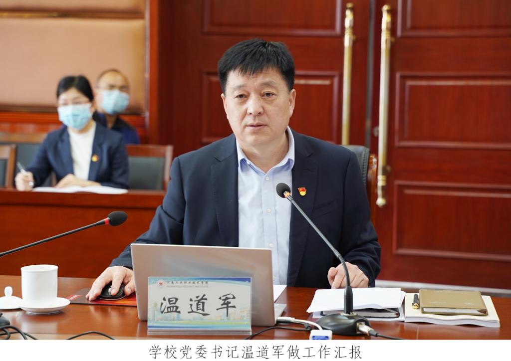 3月23日,在全国全省疫情防控形势持续向好、生产生活加快恢复、学校开学准备有序展开的关键时期,河南省委军民融合发展委员会办公室常务副主任唐远游一行到我校调研指导新冠肺炎疫情防控和学校事业发展各项工作。省委军民融合发展委员会办公室副主任袁玉新、二级巡视员江孝岭、机关党委专职副书记朱云松、机关纪委书记柴志芳、秘书处二级调研员叶青陪同调研。学校领导班子全体成员参加调研。