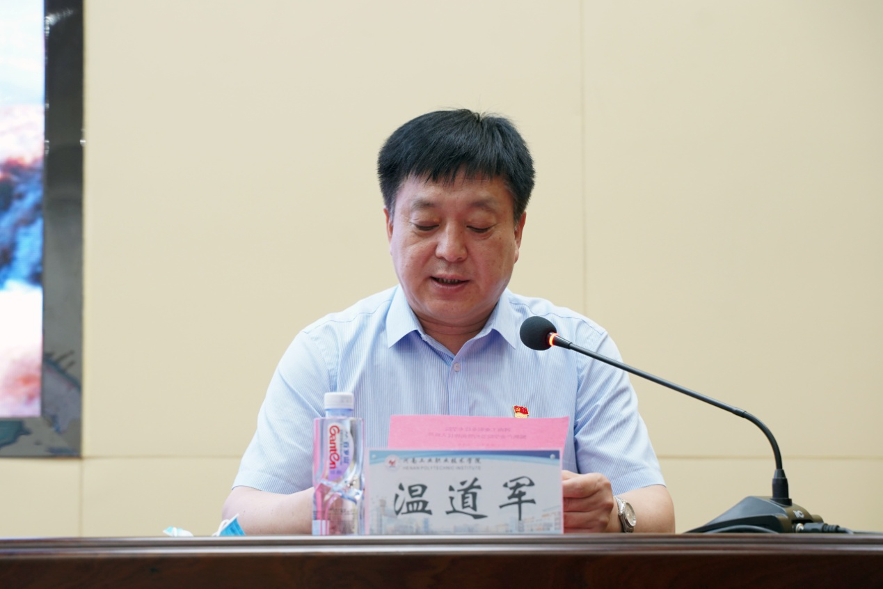 温道军代表学校致欢迎辞,向与会领导和来宾表示欢迎,向长期以来关心和支持学校发展建设的领导和专家表示衷心的感谢。他表示,“鲲鹏产业学院”的成立,是学校深度推进产教融合、校企协同育人的重要成果,是提升学校平台建设的重要机遇,是学校加强高水平专业群建设的重要平台,学校将认真履行协议内容和工作职责,集中优质资源,全力将“鲲鹏产业学院”办出水平,办出特色,打造成全省高职院校产业学院的标杆。