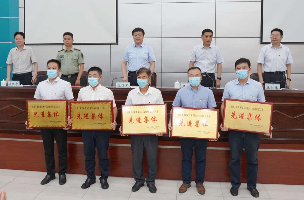 会上,工会主席屈保中总结了我校2019年征兵工作,安排部署了2020年大学生征兵工作任务。副校长王仁伟宣读了《学校关于表彰2019年度征兵工作先进集体和个人的决定》,与会领导分别为汽车工程学院、城市建设学院、机械工程学院、经济管理学院、环境工程系五个征兵工作先进集体和杨亮等十名征兵工作先进个人代表进行颁奖。城市建设学院党总支书记王兴举作为征兵工作先进集体代表做了经验交流发言。宛城区人武部部长赵耕对学校近年来征兵工作所做出的成绩给予了充分的肯定,并对做好学校2020年征兵工作提出了建议和要求。