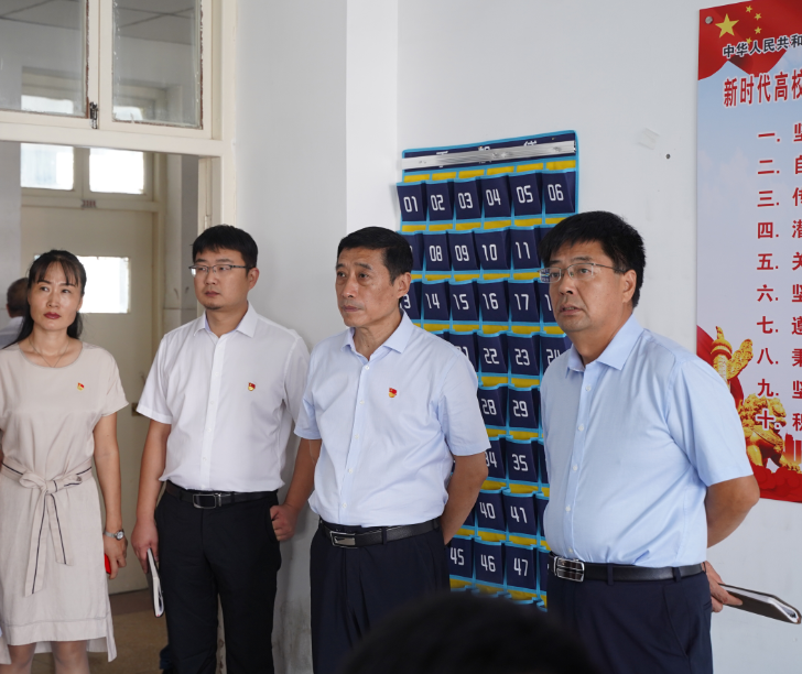 王伟校长一行先后来到学校教学监控室、教学楼、学生公寓、南北实训楼等地,检查“开学第一课”上课情况。在教学楼各班级,班主任老师精神饱满地与学生共同学习,多媒体设备运行正常,教学保障措施到位,王校长对井然的教学秩序和广大教职工敬业的态度表示赞扬。王校长强调,各教学单位要在普及防护知识、落实防控要求的基础上,充分挖掘疫情防控期间的育人元素,扎实开展好爱国主义教育、科学知识教育和心理疏导。