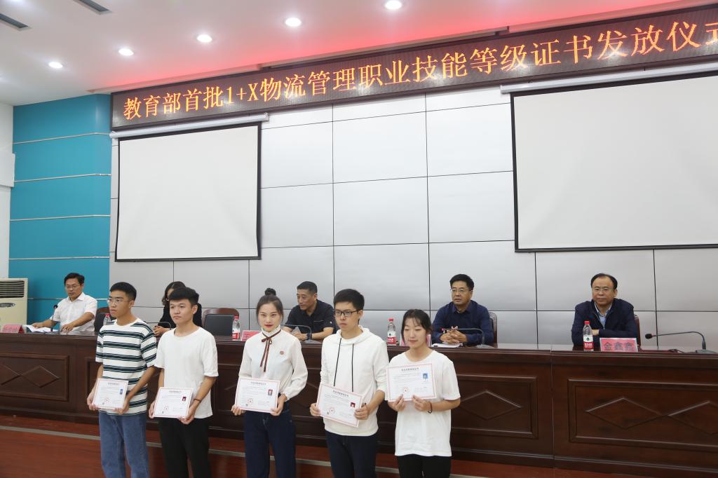 9月25日上午,学校在行政楼一楼会议室举行教育部首批1+X证书试点物流管理职业技能等级证书发放仪式。校长王伟、副校长贾庆成,教务处、经济管理学院负责人以及物流管理专业全体师生参加证书发放仪式,仪式由经济管理学院院长杨俊峰主持。