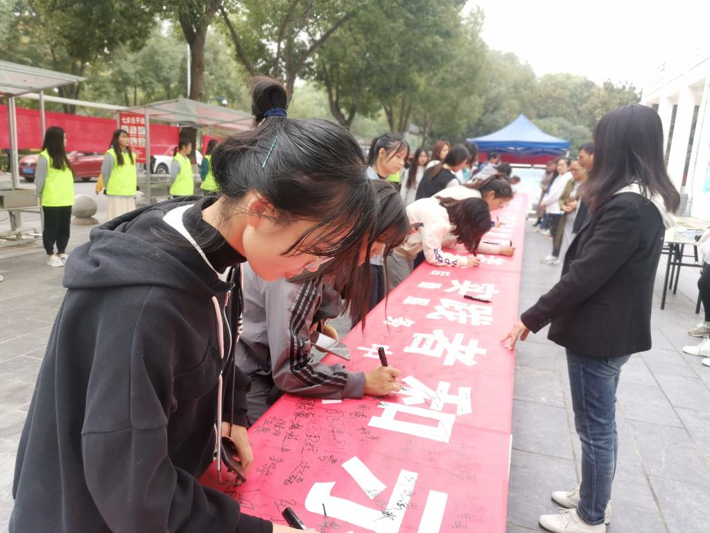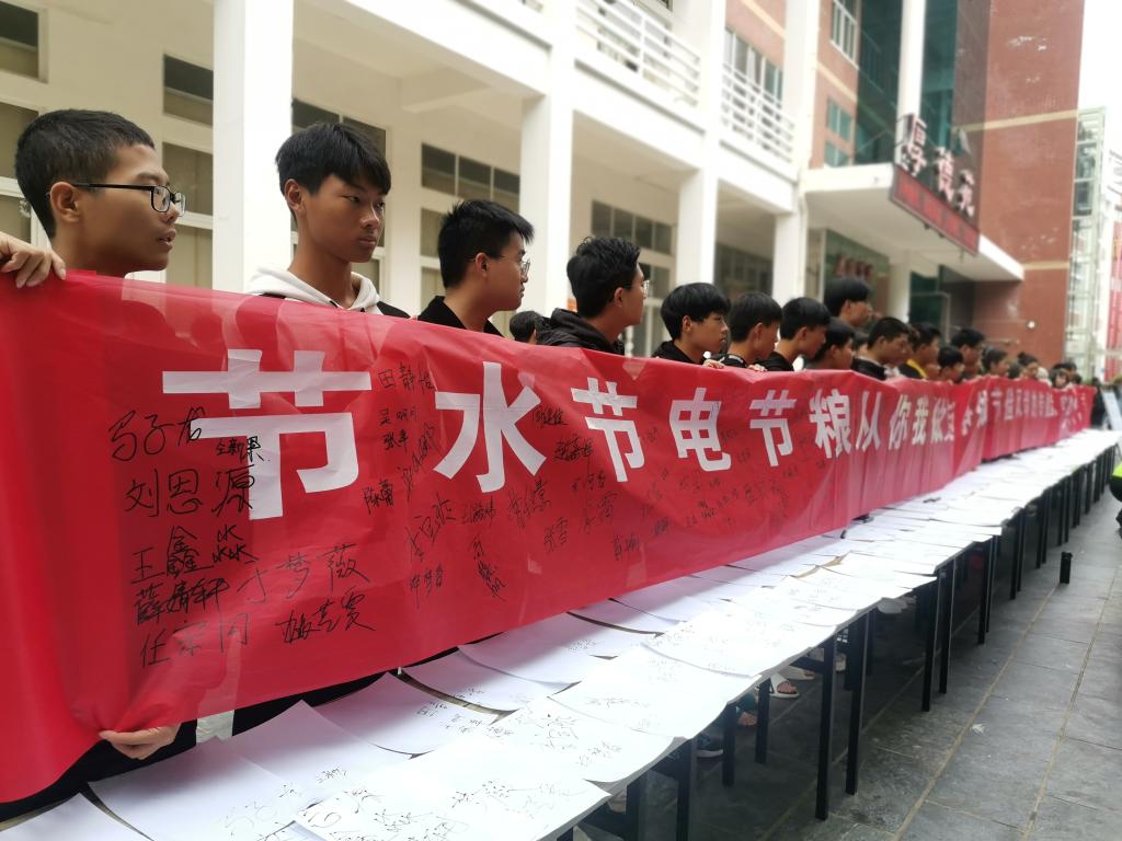 为深入贯彻落实习近平总书记对制止餐饮浪费行为作出的重要指示精神,积极响应上级和学校号召,快速在我校形成“厉行节约、反对浪费”的新风尚,10月27日,后勤服务中心联合学生处、团委在厚德苑餐厅前隆重举行“节水、节电、节粮”签名承诺活动,学校党委书记温道军、副校长刘纪山及校园数千名师生参加了活动。