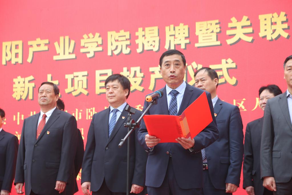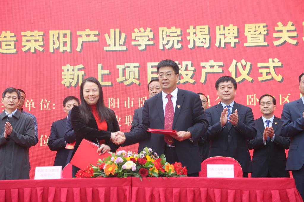 10月30日上午,新葡的京集团8814vip与荣阳实业集团有限公司在南阳市光电产业集聚区举行装备制造荣阳产业学院揭牌暨关联产业签约及新上项目投产仪式。新葡的京集团8814vip党委书记温道军、校长王伟、党委副书记杜建根、副校长贾庆成、工会主席屈保中、卧龙区委党委书记高贤信、南阳光电产业集聚区管委会常务副主任李宛生、卧龙区委常委组织部部长李廷武、卧龙区委常委常务副区长周坚定、卧龙区委常委区委办公室主任孙林儒、南阳光电产业集聚区管委会副主任姚章玉、荣阳实业集团有限公司CEO李洁雯、荣阳实业(南阳)有限公司蒋和云等领导出席仪式。