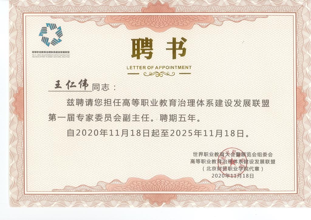 11月18日,2020第五届世界职业教育大会——2020高等职业教育治理体系建设发展联盟成立大会暨高等职业院校治理体系建设论坛在青岛举行。我校获评“2020全国高等职业院校治理体系建设优秀案例50强”,副校长王仁伟被选为高等职业教育治理体系建设发展联盟第一届专家委员会副主任,党政办公室主任马小兵被选为联盟第一届理事会副秘书长。