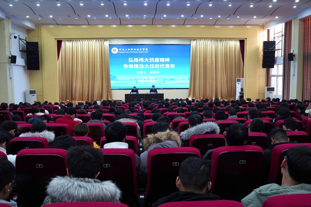温道军带领大家回顾了我国抗击疫情的斗争历程,从领导力、民心力、协作力、精神力四个方面回答了中国抗疫胜利的原因所在;带领大家放眼世界看中国,从方向抉择、执政方略、治理模式、精神塑造四个方面进行对比阐释,深刻阐述了青年人必须坚定“四个自信”,坚定成长成才的信念。激励青年学生要夯实基础、勇于尝试、敢于挑战,与祖国同心同向,与学校同路同行,不彷徨,不懈怠,不止步,践行伟大抗疫精神,筑梦最燃奋斗青春。躬身践行,立足岗位、担当奉献,以不弃微末、久久为功的姿态接续奋斗,把精神的力量转化为攻坚克难的澎湃动能,更加坚毅自信地面对风雨、开创未来,为实现中华民族伟大复兴的中国梦贡献蓬勃的青春力量。