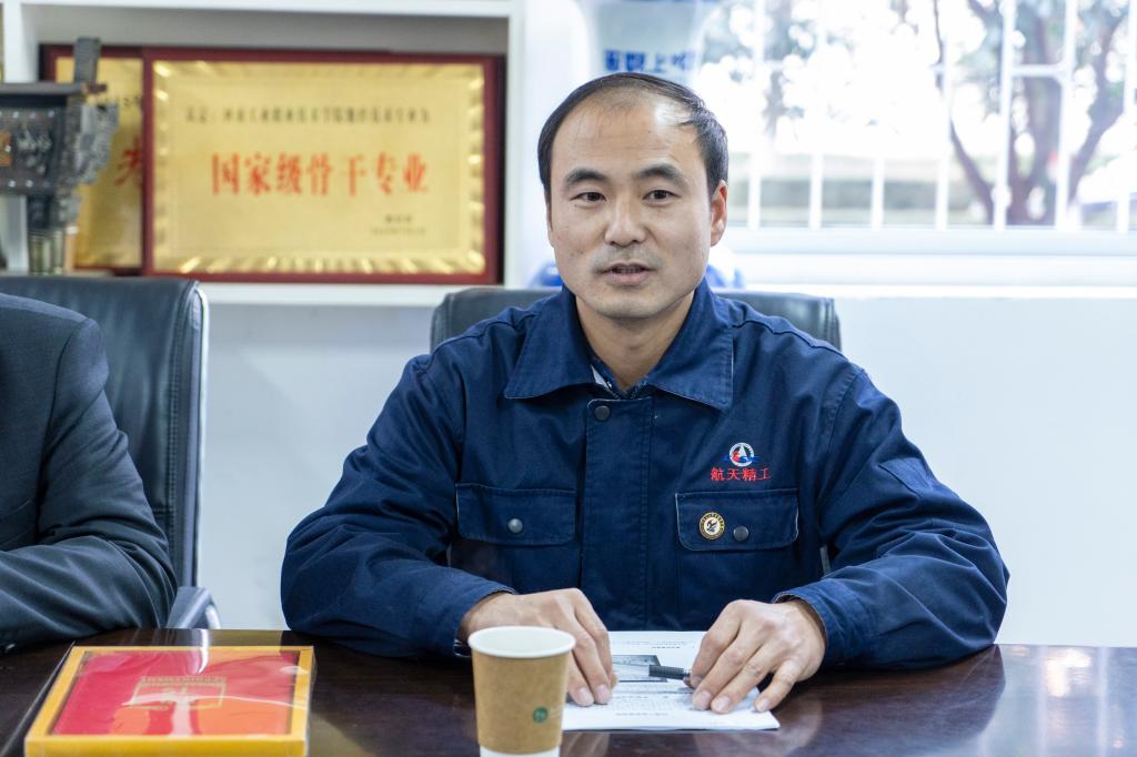 22日下午,“全国劳动模范座谈交流会”在机械工程学院会议举行,余军伟与副校长王仁伟、机械工程学院院长朱成俊、党总支书记秦启书、师生代表等畅所欲言,再叙母校情谊,共话职业发展。余军伟畅谈了工作于河南航天精工有限公司十年来,扎根基层一线,专注墩制加工工艺,持之以求、不断创新、攻克难关的执着和坚守,并就学生提出的“就业初期最大的困难”“如何进一步提升技术水平”等话题进行深入交流。副校长王仁伟用“懂感恩、讲奉献、善学习、知敬畏、勇创新”肯定了余军伟从普通技工成长为攻坚克难技能大师的成长经历,鼓励青年学子像余军伟一样,用自己的双手、智慧和汗水,实现对美好幸福未来的向往。