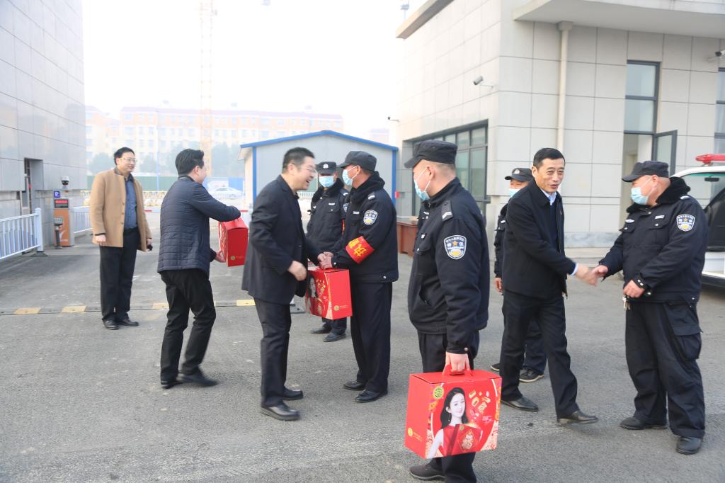 春风送暖,万家团圆,在2021年农历大年初一(2月12日)清晨,学校校长王伟、副校长王仁伟、工会主席屈保中带领党政办公室、党委宣传部、党委武装部、工会、后勤服务中心等相关部门深入一线,向坚守在工作岗位的人员和他乡求学的留学生送上新春祝福和慰问品。