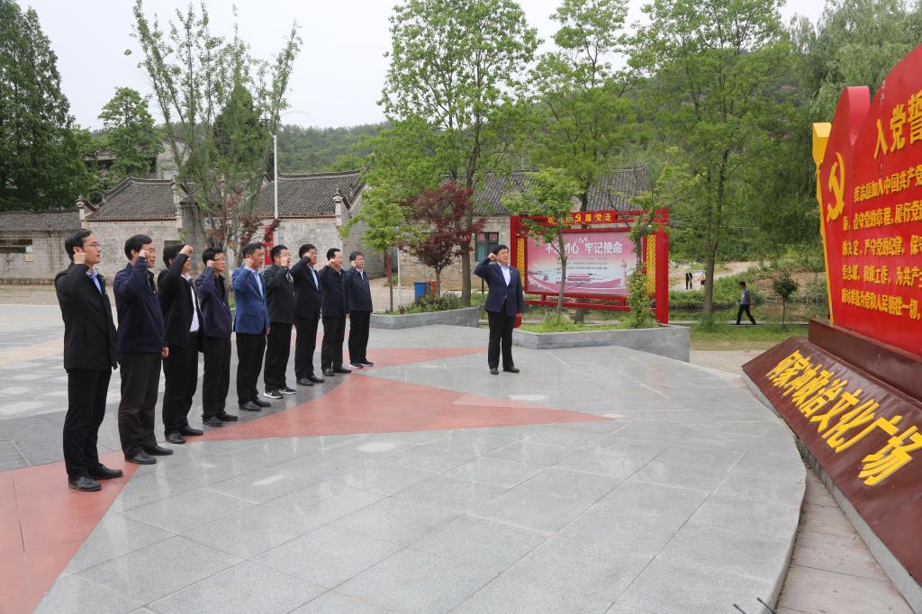 穿过闪闪红星门,来到何家冲政治文化广场,在党委书记温道军的带领下,全体党委成员面对鲜红的党旗,伸出右手,高举拳头,重温入党誓词,将“不忘初心、铭记历史,牢记使命、砥砺前行”融入到铮铮誓言之中。
