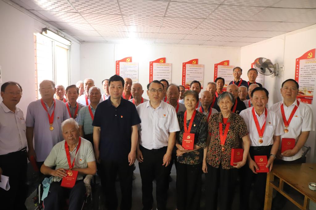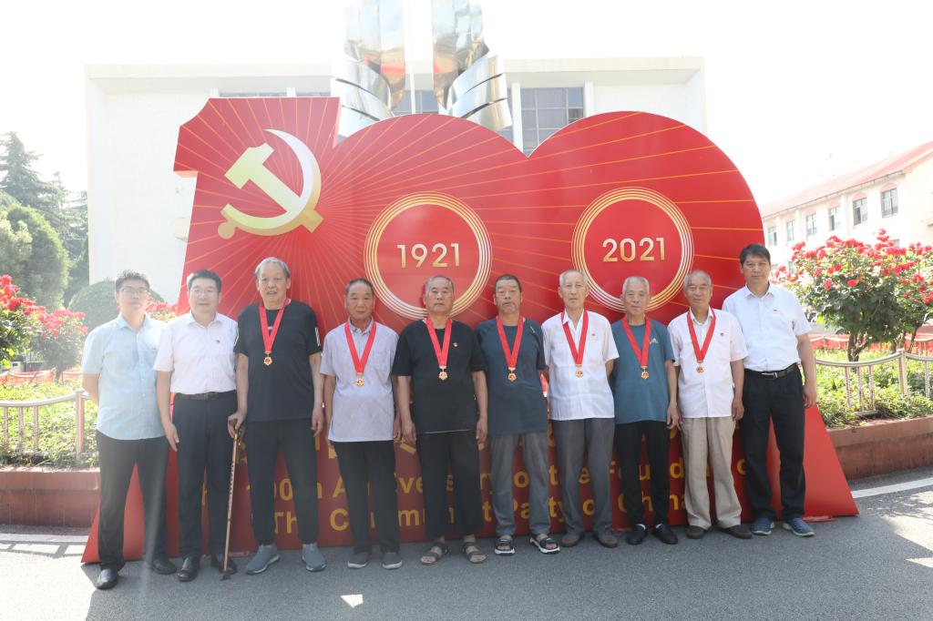 在三个家属区的党员活动室,校领导分别为荣获“光荣在党50年”纪念章的老党员同志们一一颁发纪念章并合影留念,向党龄满50年的老党员们致以崇高的敬意,感谢他们为学校建设发展所作出的辛勤努力,以及对学校工作的大力支持。