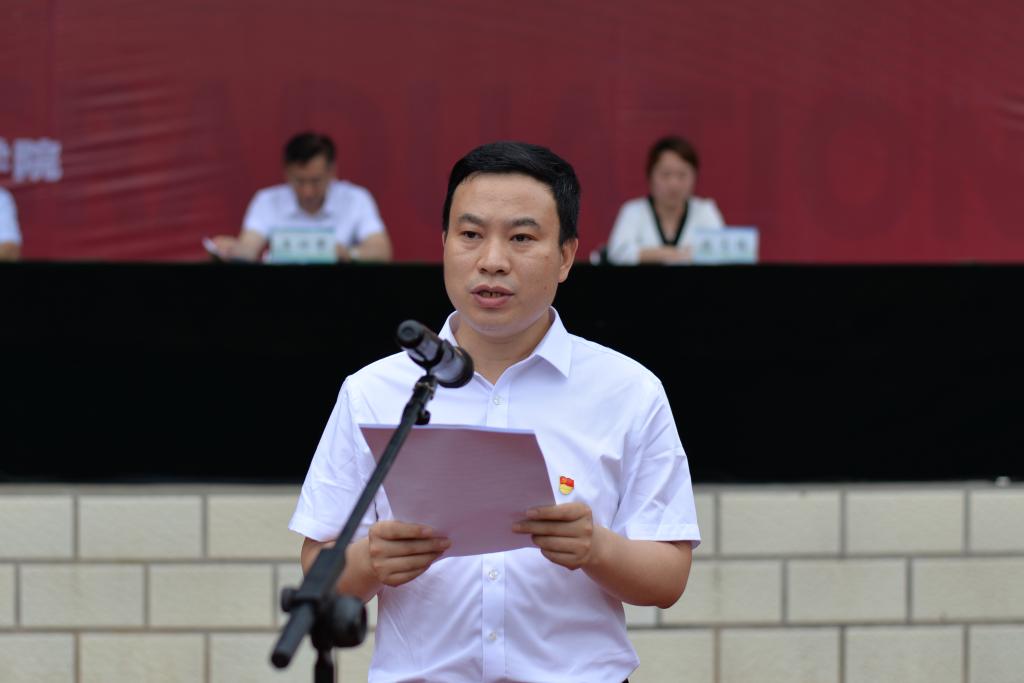 教师代表建筑工程学院副院长张志伟满怀真情对全体毕业生进行寄语和祝福,希望全体毕业生在今后的学习和工作中,以校训为指引,做一个品德高尚、人格健全、具有高度责任感和事业心的人,要专心好学,锲而不舍的追求知识、追求真理,在知识与技能上实现厚积厚载,在做人与做事上实现相得益彰。