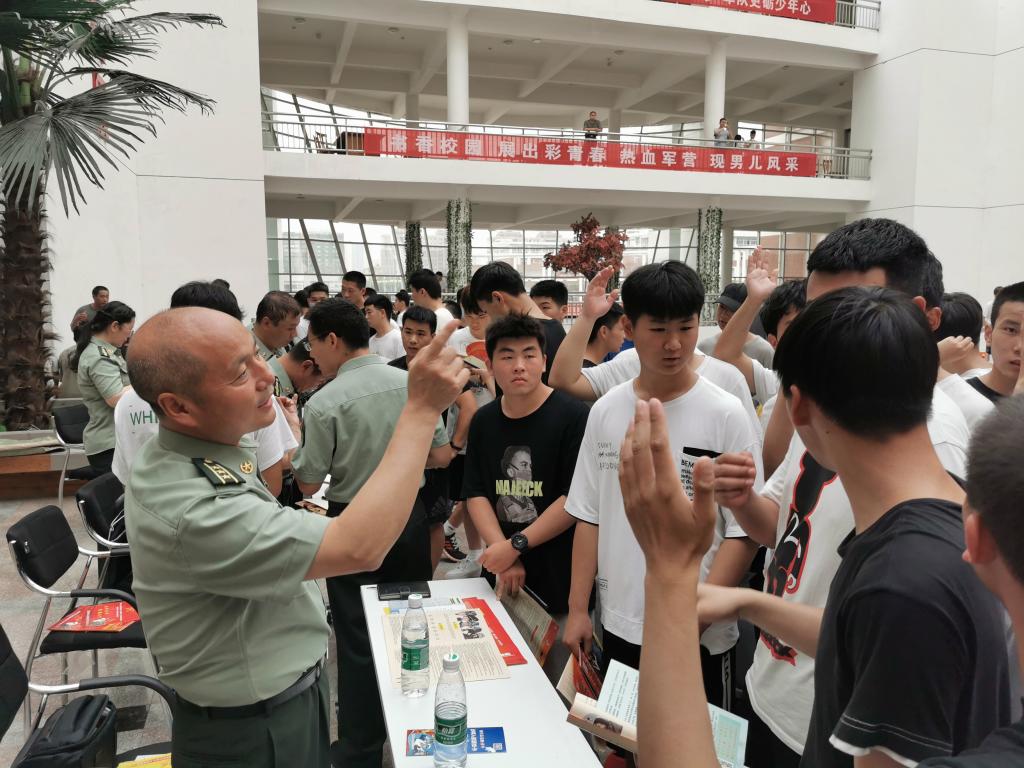 仪式结束后,与会领导和师生依次到“投身绿色军营、追梦无悔青春”主题板前签名。同时为解决我校大学生报名集中的矛盾问题,市征兵办公室首次集中13个县市区,根据各辖区报名大学生情况,对在我校报名应征的学生,现场疏导分流回各县报名达200余人,有效改善了各县(市、区)大学生应征报名不均衡的情况。