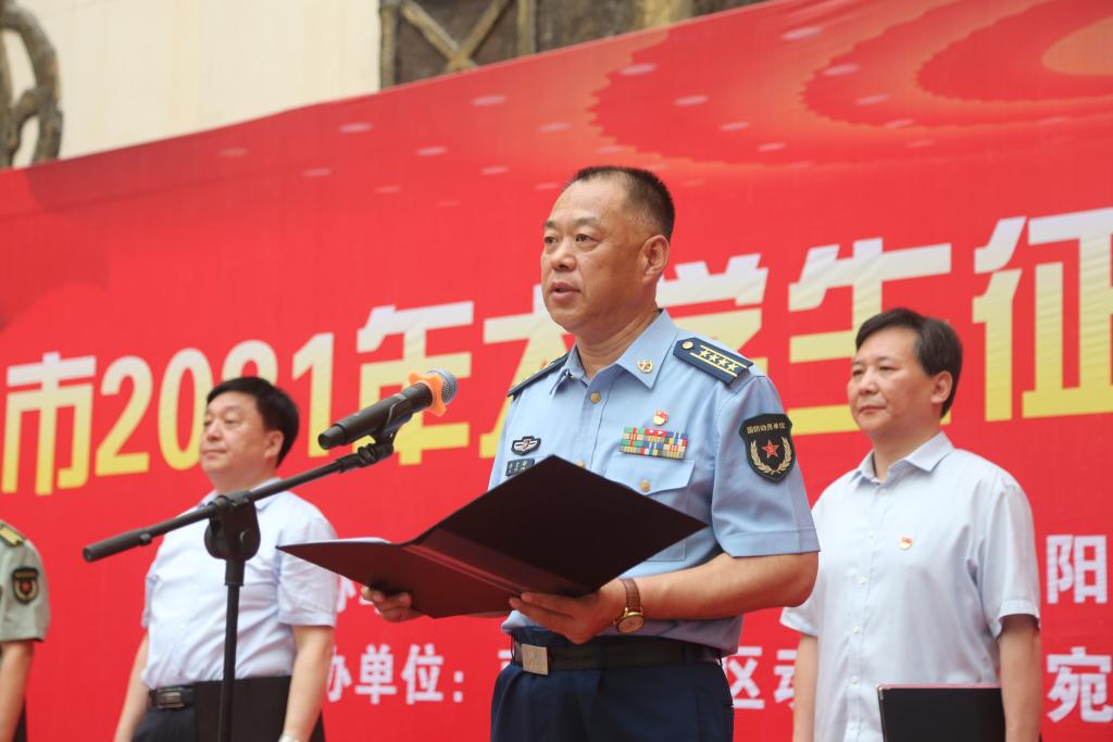 6月25日上午,南阳市2021年大学生征兵集中宣传活动仪式在孔明路校区图文信息楼二楼大厅举行,市委常委、军分区司令员许言龄,市征兵领导小组组长、市政府副市长石秀田,校党委书记温道军,校长王伟,军分区副司令员杨保军,军分区动员处处长卢成轶,校工会主席屈保中出席仪式,各县(市、区)征兵办公室主任,南阳市各高校武装部长以及师生代表500余人参加活动。仪式由南阳军分区副司令员杨保军主持。