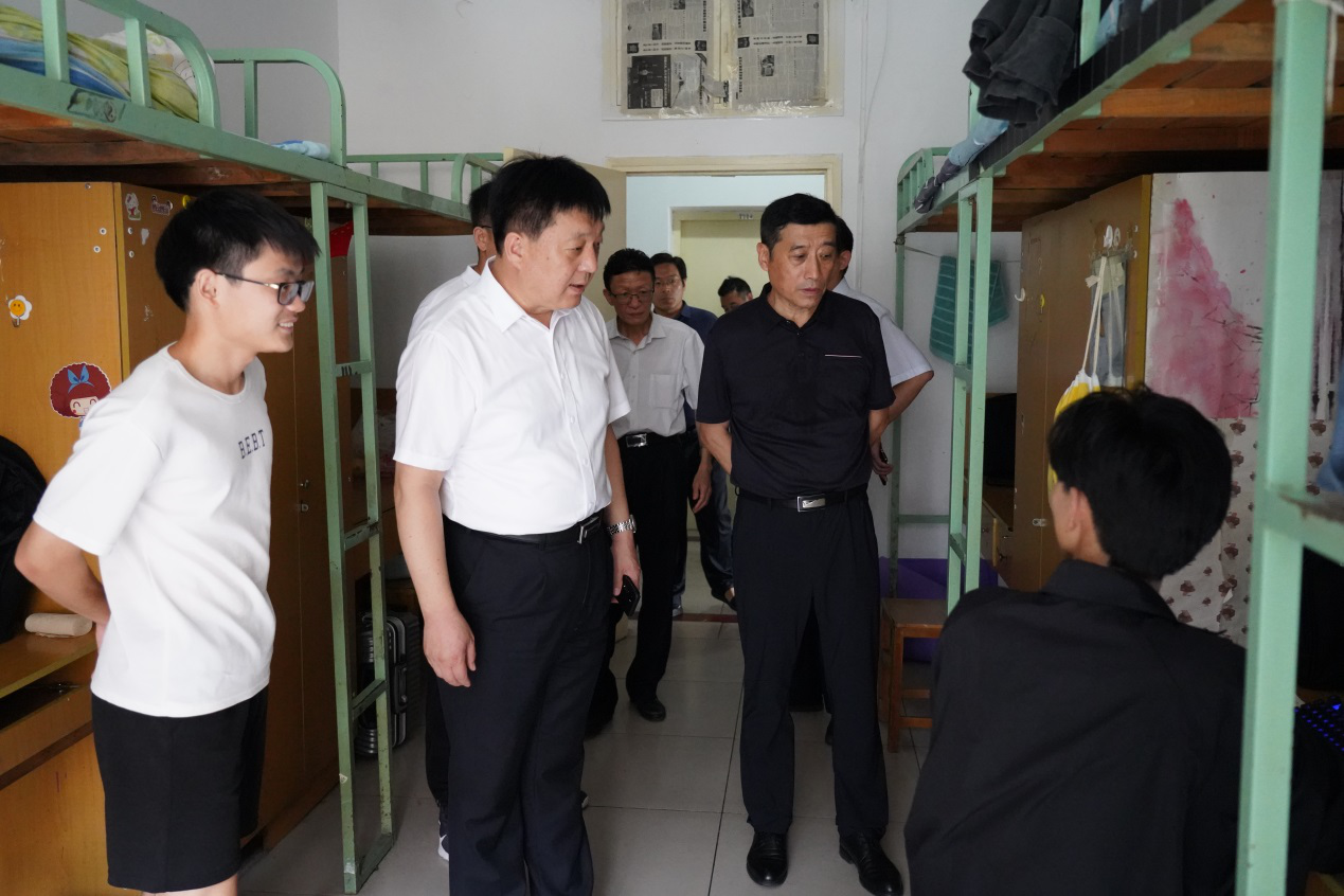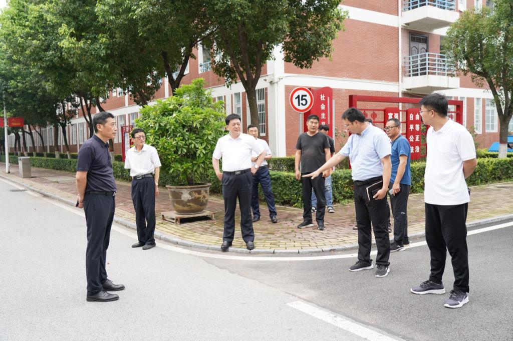 为了贯彻落实习近平总书记关于防汛救灾工作的重要指示精神和省委、省政府及省防汛抗旱指挥部的决策部署,确保校园汛期安全稳定,7月23日,学校党委书记温道军、校长王伟、副校长刘纪山带领党委宣传部、党委学生工作部、党委武装部、国有资产管理处、后勤管理处、后勤服务中心等部门负责人深入校园重点区域、重点部位,开展学校防汛安全隐患排查督导工作。