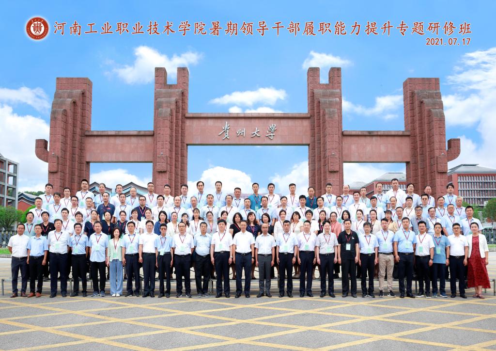 7月16日至22日,学校暑期领导干部履职能力提升专题研修班在贵州大学举办,本次培训由校党委书记温道军、校长王伟带队,校领导杜建根、王仁伟、刘纪山、李荣胜、屈保中、樊有平及全校中层干部参加培训。