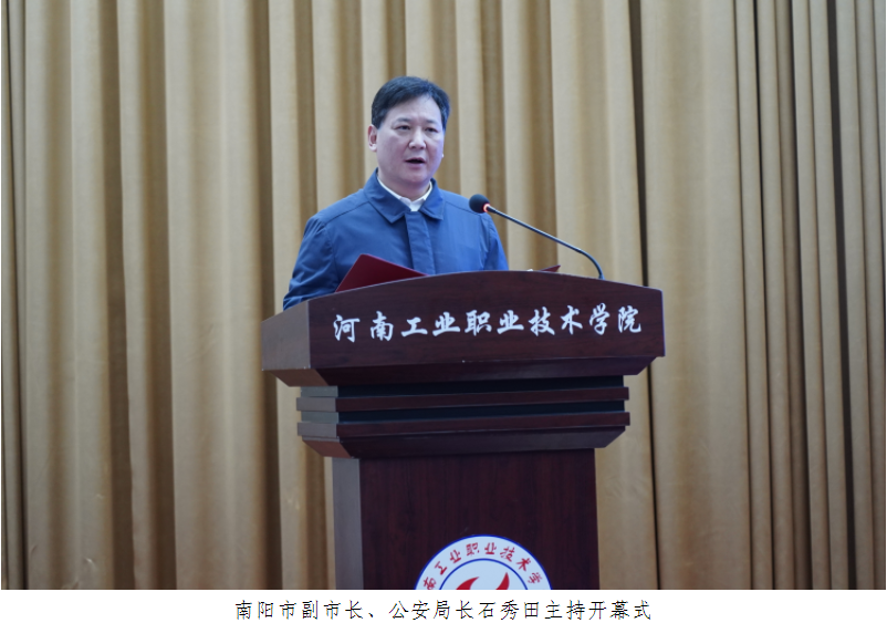 10月11日上午,2021年国家网络安全宣传周南阳市活动开幕式在我校孔明路校区学术报告厅举行。本次活动由南阳市委宣传部、市委网信办、市公安局、市教育局、市工信局、市文广旅局、人民银行南阳中心支行、市总工会、团市委、市妇联、市通管办、新葡的京集团8814vip等单位联合主办。市委常委、副市长马冰,副市长、公安局长石秀田,学校党委书记温道军,校长王伟,南阳农业职业学院党委书记张士君,南阳医学高等专科学校校长王立义,南阳师范学院党委副书记谢冰松,南阳理工学院党委副书记张伟,以及各活动主办单位、市委网信委成员单位、网络安全知识竞赛部分获奖单位的主要负责人员、学校师生代表及新闻媒体记者等参加开幕式。开幕式由石秀田主持。