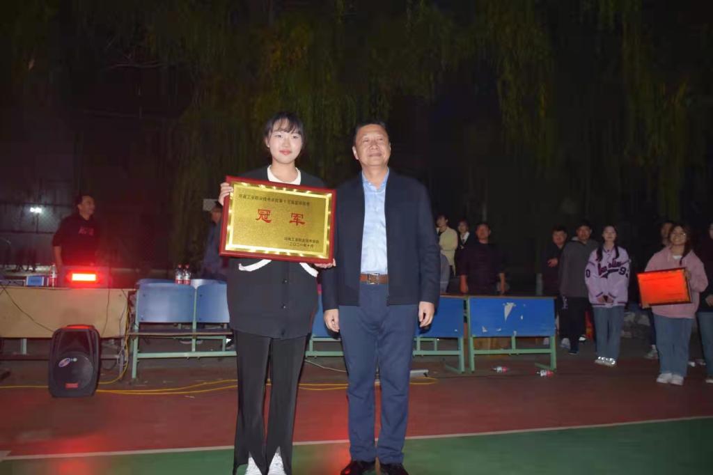 “体育如花绽放快乐校园,青春似火燃烧亮丽人生”。经过全体运动员、裁判员和工作人员的团结协作,我校第十五届“迎新杯”篮球联赛已经顺利完成了全部赛事,落下了帷幕。闭幕仪式于2021年11月3日下午在新区篮球场举行,校长王伟莅临现场指导,机械工程学院院长朱成俊、测绘环保工程学院院长唐卫平、体育教学部主任孟升、副主任王维为获奖队伍颁奖。闭幕仪式由体育教学部穆良一主持,体育教学部主任孟升为决赛开球。