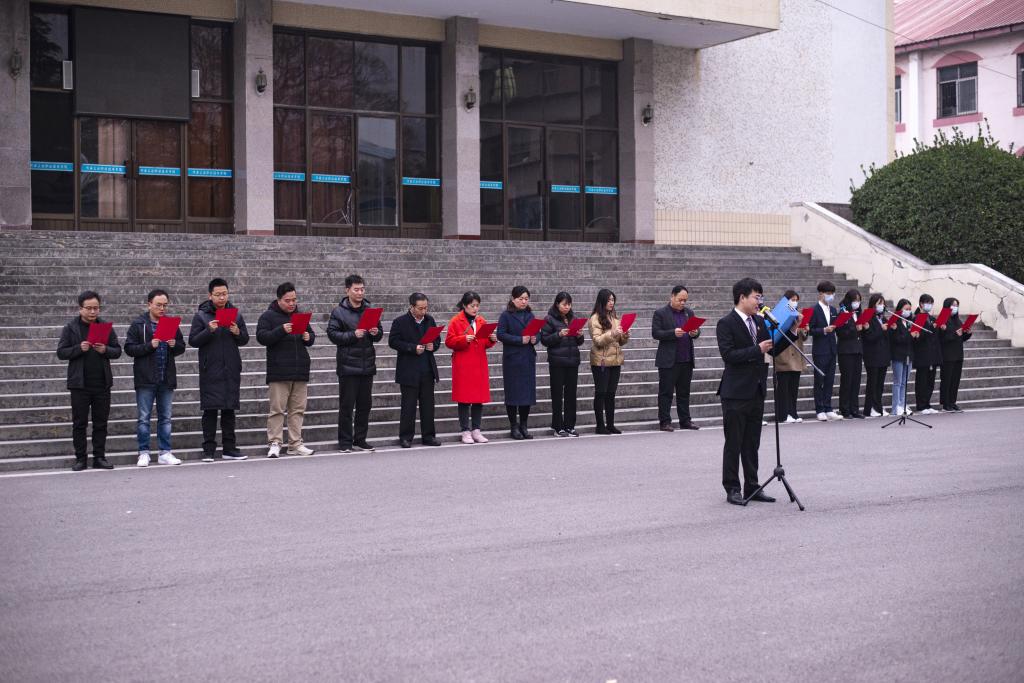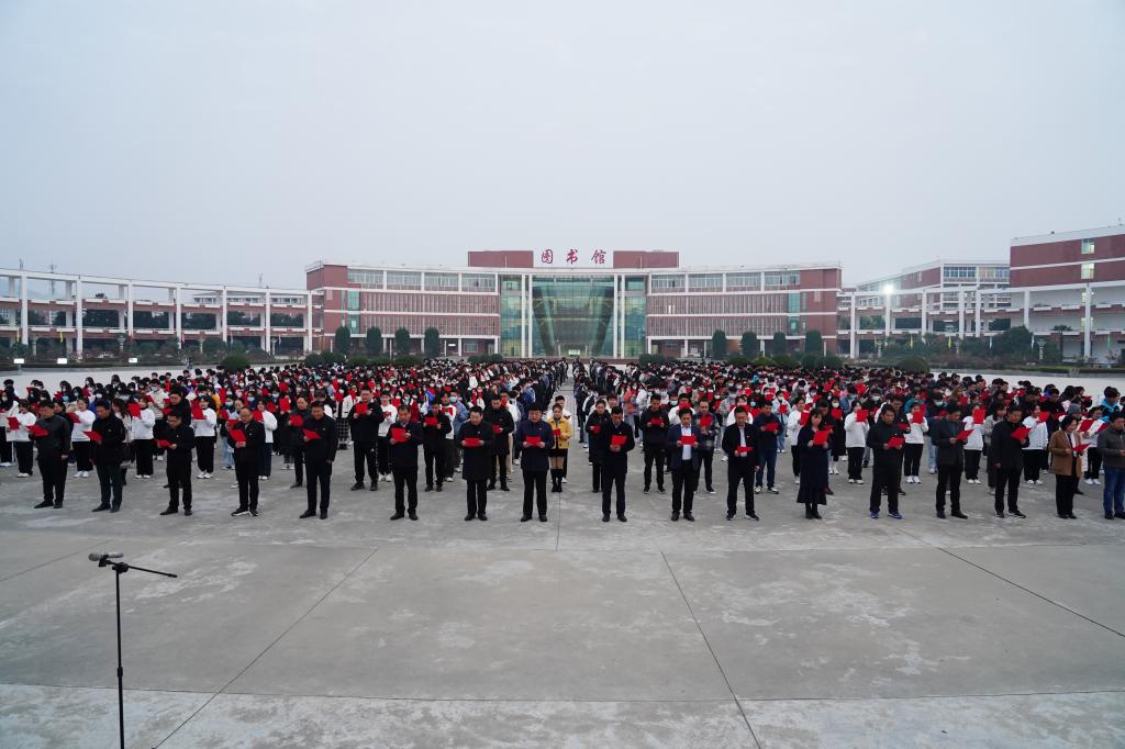 为推动学习宣传宪法,弘扬宪法精神,11月29日,学校在孔明路校区、光武路校区同时举行2021年宪法宣传周升旗仪式暨“宪法晨读”活动。党委书记温道军、校长王伟、副校长王仁伟出席,中层领导干部和各学院师生代表参加。孔明路校区活动由汽车与航空工程学院党总支书记王浩主持,光武路校区活动由建筑工程学院团总支书记朱宗海主持。