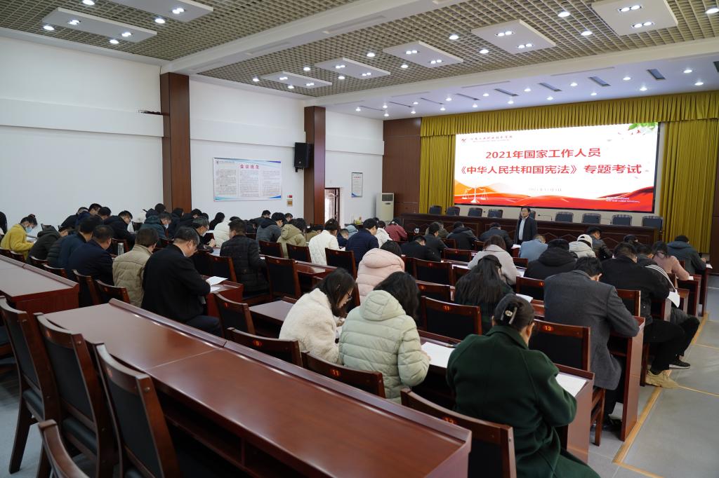 2021年12月4日是第八个国家宪法日,为认真学习贯彻习近平法治思想,深入贯彻落实党的十九大和十九届六中全会精神,推动学习宣传宪法,弘扬宪法精神,维护宪法权威,12月3日,学校在办公楼一楼会议室开展了2021年度宪法知识考试,各党总支、直属党支部的中层干部和教职工代表参加了考试。