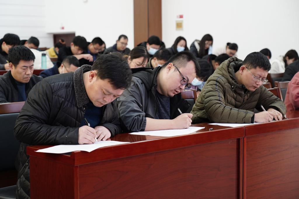 考试内容以宪法、习近平新时代中国特色社会主义思想、习近平法治思想、党的十九届六中全会等知识点为主,以填空、单选、多选、判断、简答等题型对考试人员进行考核。考试过程中层干部、教职工们认真答题,在答题中学习、在学习中提高,切实达到了以考促学的目的。