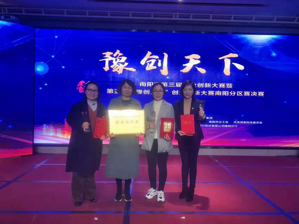 12月16日,南阳市第三届创业创新大赛暨第五届“豫创天下”创业创新大赛南阳分赛决赛在梅溪宾馆举行。我校在本次大赛中获得“优秀组织奖”。本次大赛由市人社局主办,市发改委、市教育局、市总工会、市妇联、中国邮政储蓄银行南阳分行等单位联办,市就业促进服务中心协办。大赛以“澎湃发展动力 助力南阳出彩”为主题,分为创业项目组、创新项目组,于今年6月启动,来自市直、各县区、高校及各创业孵化园区的97个项目报名参赛。