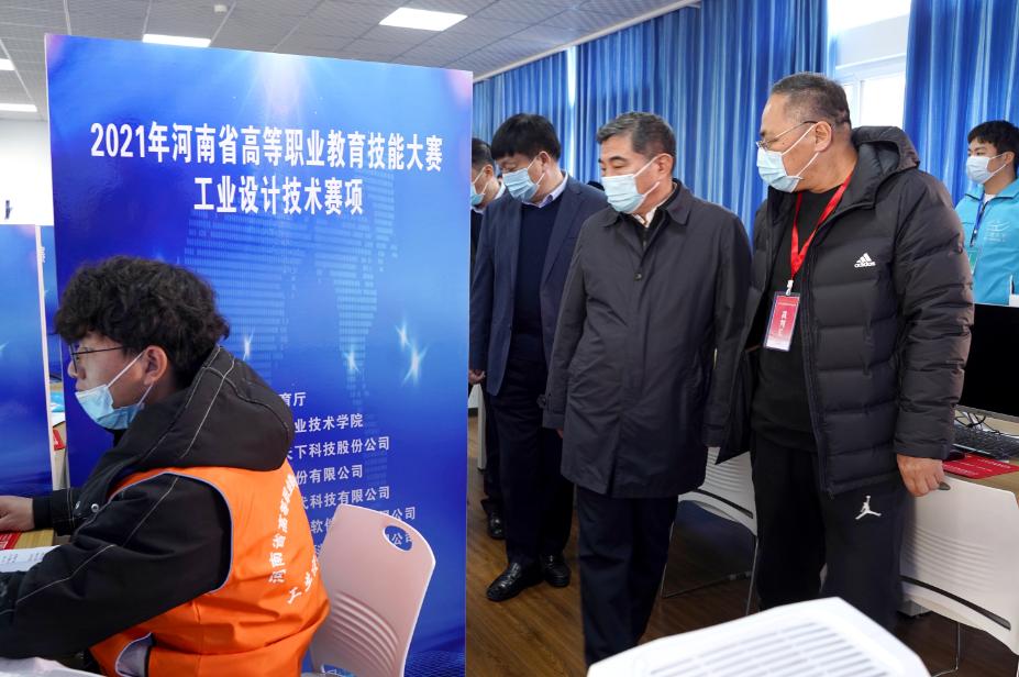 陈垠亭一行随后参观了学校办学成果展、机械工程学院数控加工中心和精密制造中心,现场查看了2021年河南省职业院校技能大赛工业设计技术赛项比赛情况。