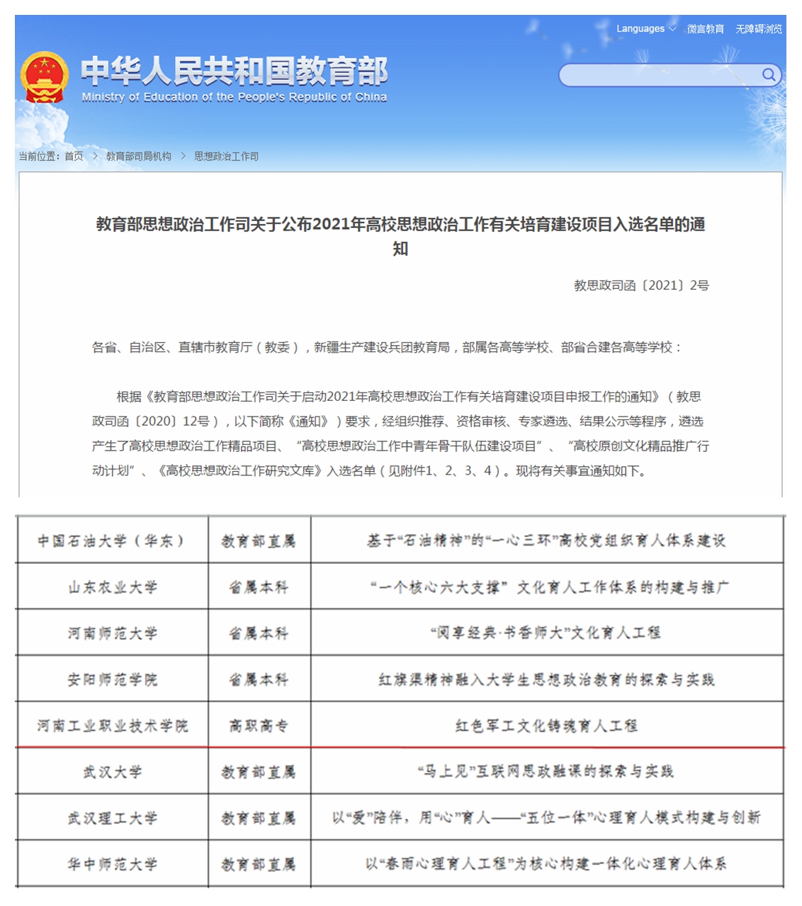4.学校文化育人项目入选教育部2021年高校思想政治工作精品项目