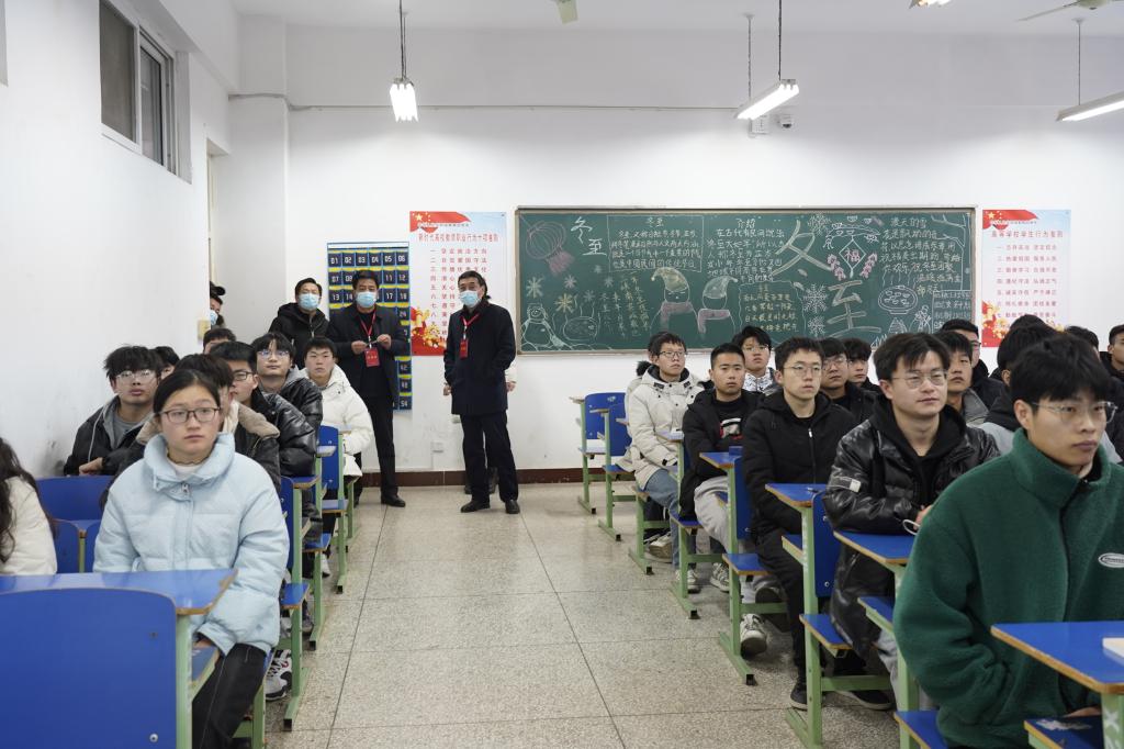 2月21日,新学期开学第一天,全校师生在教室、实验实训室、宿舍等地,通过线下集体观看、云端直播收看等形式,同上“春季开学第一课”。校长王伟、副校长贾庆成带领党委宣传部、教务处、教学督导室工作人员深入一线检查上课情况。