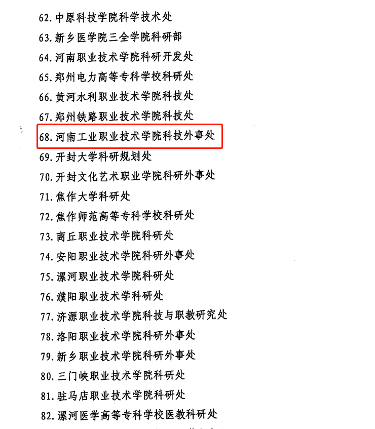 近日,河南省教育厅发布《河南省教育厅关于“十三五”期间高等学校科技创新工作情况的通报》,我校科技外事处荣获“河南省高校科研管理工作先进集体”荣誉称号。