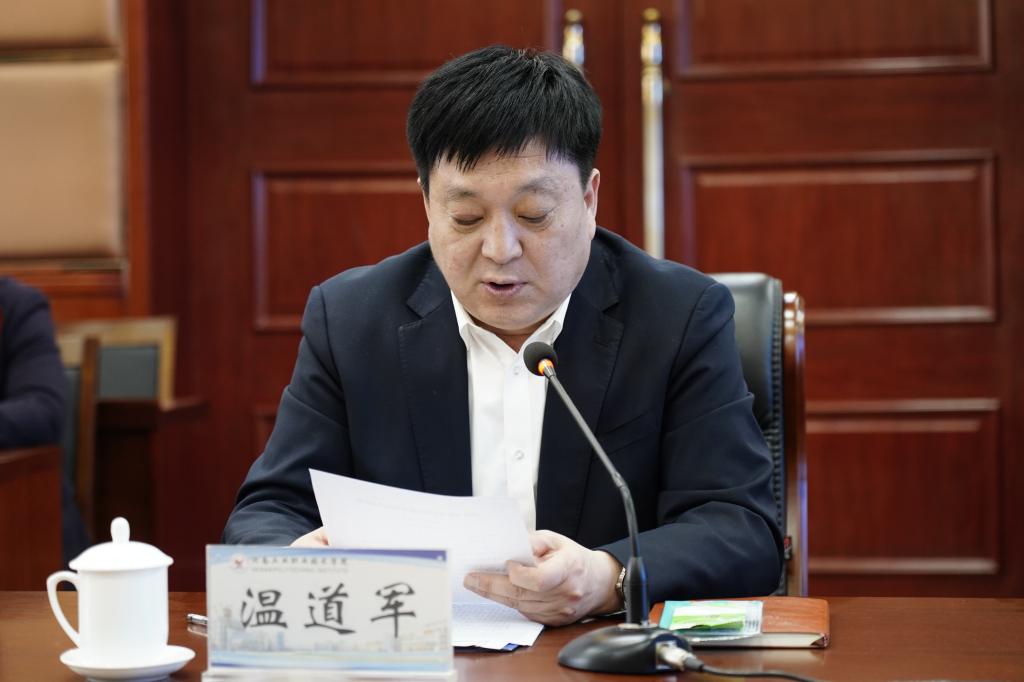 学校党委书记温道军代表学校向淅川县委、县政府和各级领导的关心、支持表示衷心的感谢,并介绍了学校的发展历史、办学特色和发展成就。温道军在讲话中指出,校地双方在推动区域发展、产业升级、科技创新、生态监测、乡村振兴、职业教育发展等领域开展深度合作,有助于推动校地“产、学、研、转、创”融合发展,为淅川经济社会高质量发展提供智力支持和人才支撑。下一步,学校将认真落实战略合作协议内容,积极主动与淅川县委、县政府和相关单位沟通交流,不断推动校地合作走向深入,为打造“双九战略”新淅川贡献职教力量。