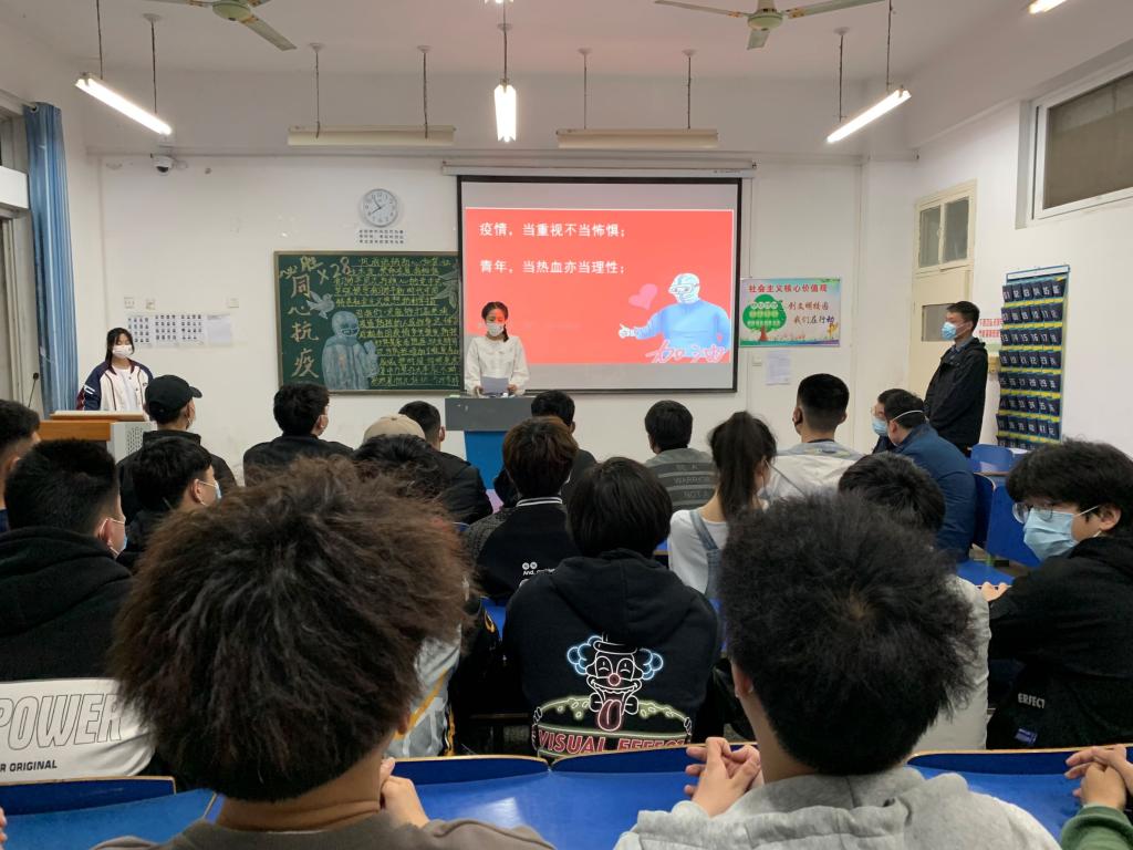 最后,班主任袁凯向同学们传达了学校最新疫情防控政策,并呼吁同学们以本次主题团日活动为契机,不负学校期望,肩负起青年大学生的使命与担当,切实落实学校疫情防控政策,齐心协力抗击疫情。(供稿/汽车与航空工程学院 撰稿/袁凯 摄影/庄振 单位审核 /王浩 编审/杨爽)