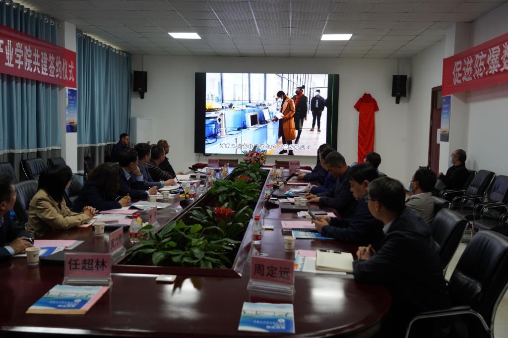 王伟一行与一通防爆电气有限公司董事长王长怀、总经理李旭明、总工程师宗林才、人力资源总监刘金梅、产教融合办公室主任周定远、智能制造部经理任超林等进行座谈交流,观看了校企双方的宣传片。李旭明介绍了企业的规模体量、产品类别、创新引领和发展目标,回顾了公司和学校长久以来的合作交流,肯定了学校为企业发展提供的强有力的技术技能人才支持,表达了未来在人才培养、项目合作及创新研发等方面与学校深度合作的愿景。王伟代表学校对一通防爆电气有限公司的热情接待以及长期以来在积极搭建校企合作平台上做出的努力和贡献表示感谢。王伟表示,校企双方要在前期合作的基础上进一步深入推进产教融合、推进校企协同育人,集中优势资源共建产业学院,培养一批契合社会需求、掌握高新技术、富有创新能力的高素质技术技能人才,为服务地方经济社会发展提供智力支持和人才支撑。学校产教融合发展中心主任丁延松、招生就业处副处长贾杏分别介绍了校企合作情况、未来合作方向和2022届毕业生情况。