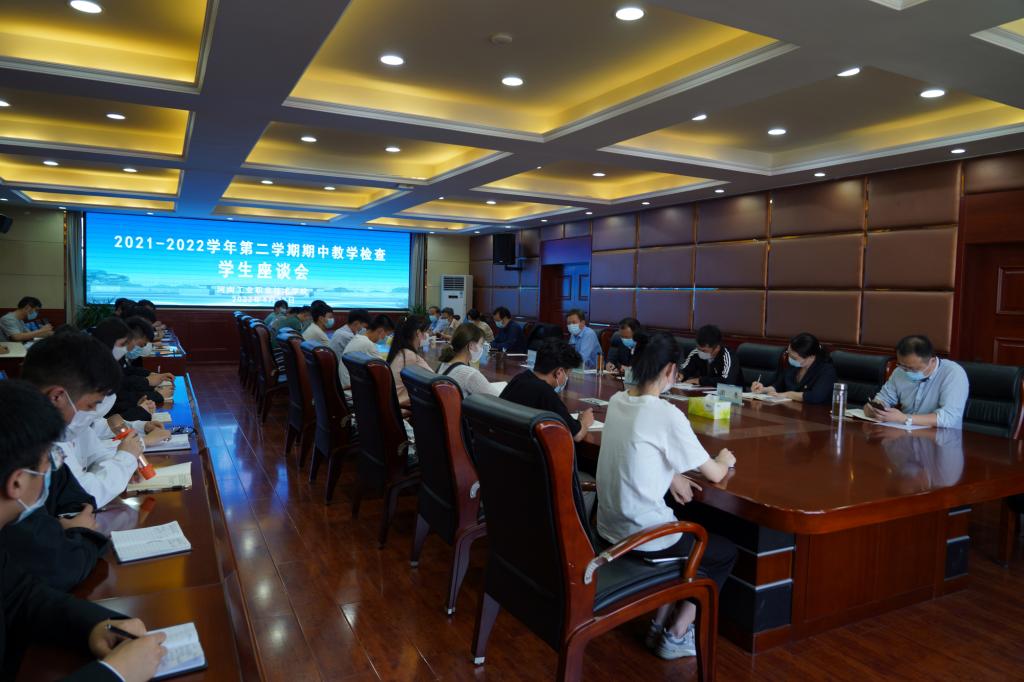 4月22日下午,学校2021-2022学年第二学期期中教学检查学生代表座谈会在行政楼四楼会议室召开,教务处、学生处、国有资产管理处、团委、图书馆、信息化管理办公室、后勤服务中心、校医院等相关部门负责人和全校34名学生代表参加会议,教务处处长杜恒主持会议。