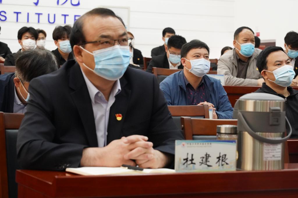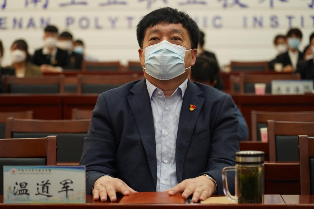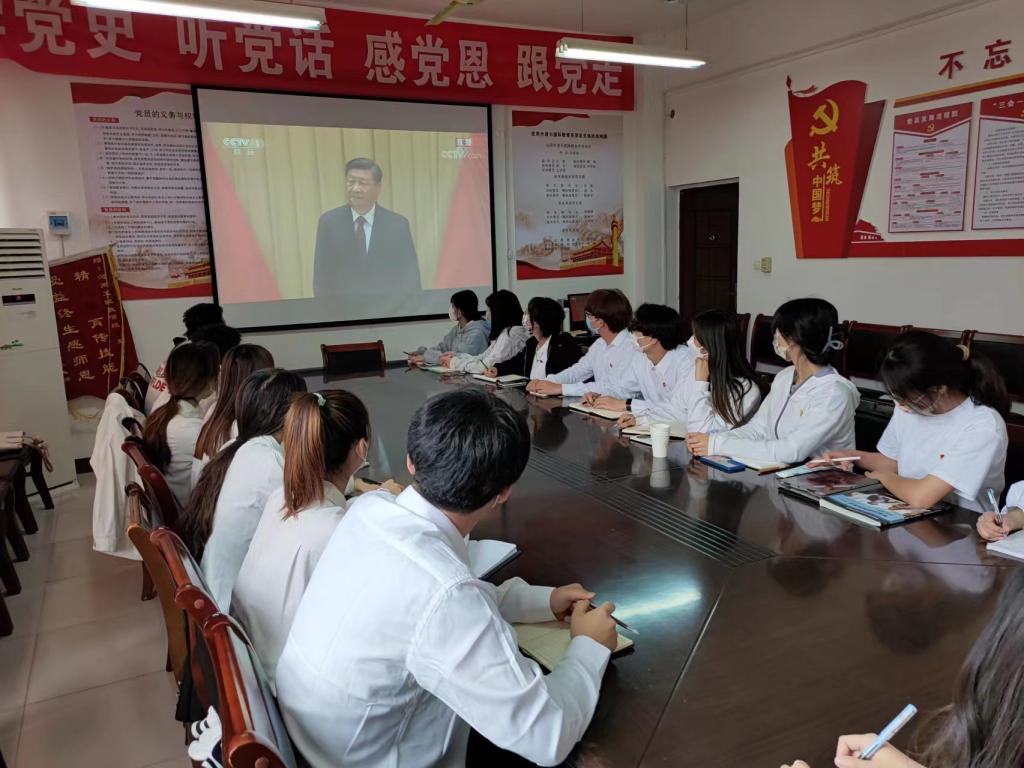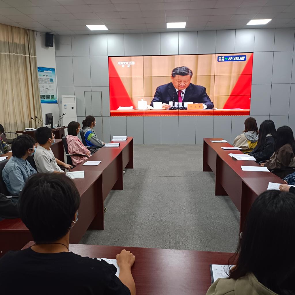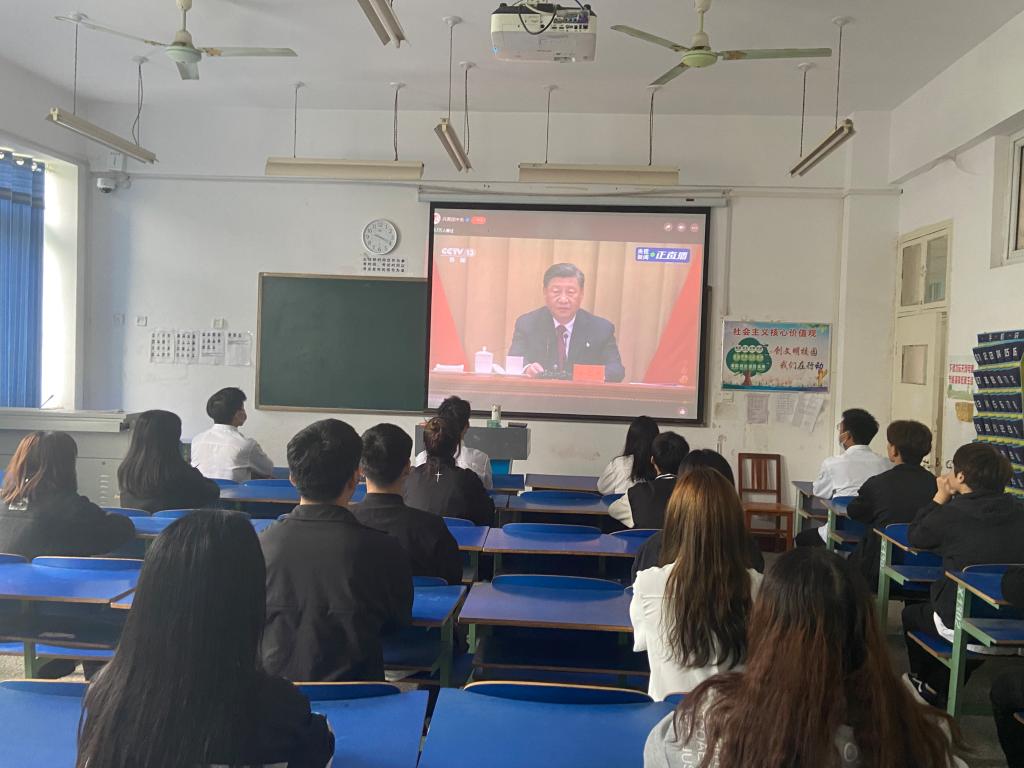 党委书记温道军、校长王伟、党委副书记杜建根、副校长王仁伟、党政办公室、党委组织部、党委宣传部、党委学生工作部负责同志、各二级学院党总支书记、副书记、省市“两红两优”代表、专职团干部、“青马工程”学员以及团员青年代表在办公楼第一会议室集中观看,各二级学院团总支分别组织各班级团支部团员青年同步收看。