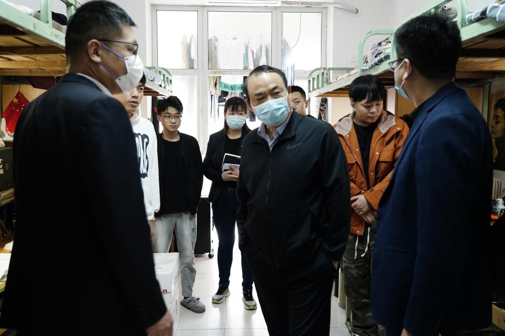 5月11日下午3时许,学校党委副书记杜建根深入机械工程学院学生宿舍看望慰问学生,并在学生公寓党团活动室召开学生座谈会,机械工程学院院长朱成俊、党总支副书记苏君及部分师生代表参加会议。会议由苏君主持。