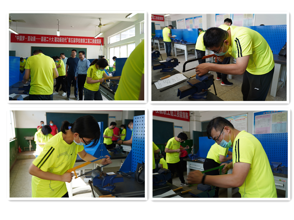 为帮助青年教师更好地找准定位,确定发展目标,快速成长为一名新时代职业教育“双师型”教师,学校举办第五届教职工钳工技能竞赛,共有26名教职工报名参赛,主要以钳工操作中的锯钻削挫为主要考点,以零件的精度为主要标准,重点考察参赛选手在钳工操作中的准确性和稳定性。在炎热的实训室内,每一位选手都在争分夺秒地认真加工,时不时地用卡尺和角度尺等量具进行精确测量,努力保证工件的精度。本次比武活动,为广大教职工相互交流、相互学习提供了平台,充分调动了教职工学习专业技术知识、钻研业务技能的能力,在学校教职工中间形成了比、学、赶、帮、超的浓厚学习氛围,在“比”中增动力、在“学”中强本领、在“赶”中争一流、在“帮”中强弱项、在“超”中谱新篇。