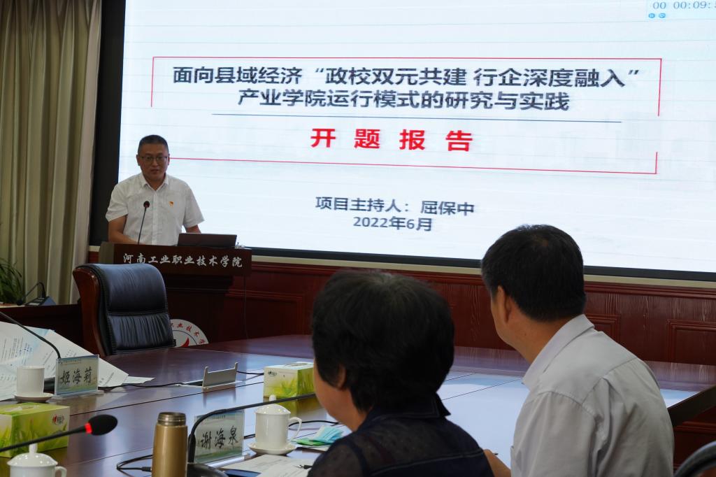 会上,贾庆成代表学校感谢各位专家长期以来对学校改革发展给予的支持与指导,介绍了学校2021年度河南教育教学改革研究与实践项目的立项情况,强调了开题报告的重要性和意义,并对项目组汇报做了具体要求。